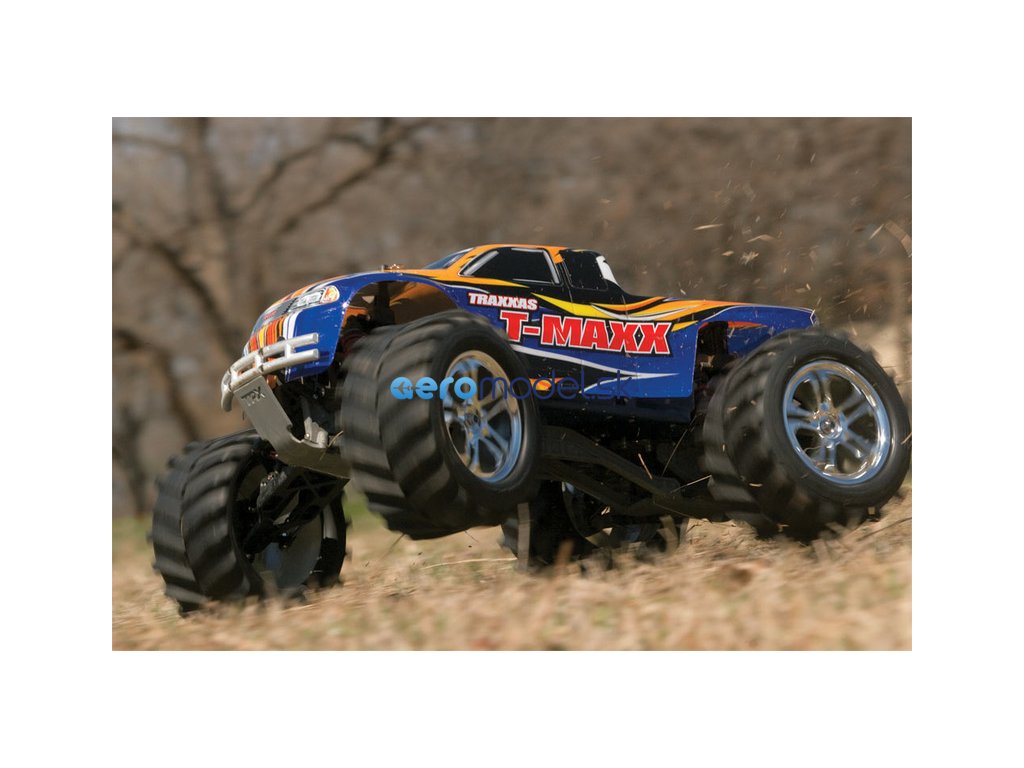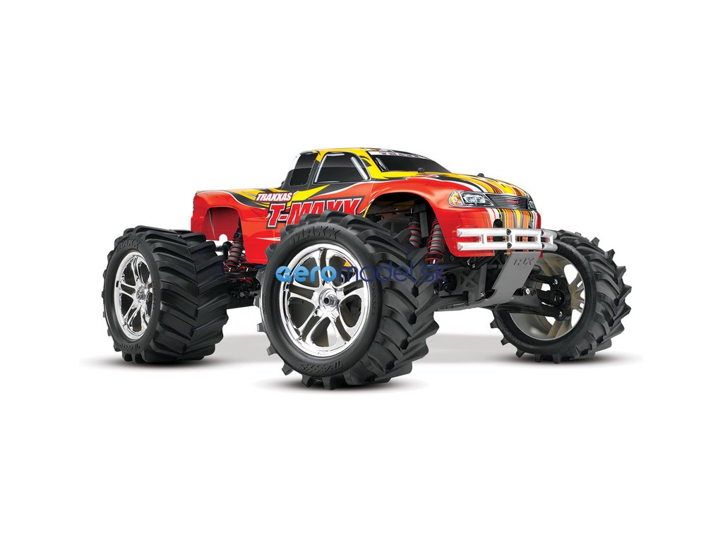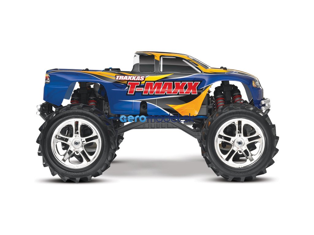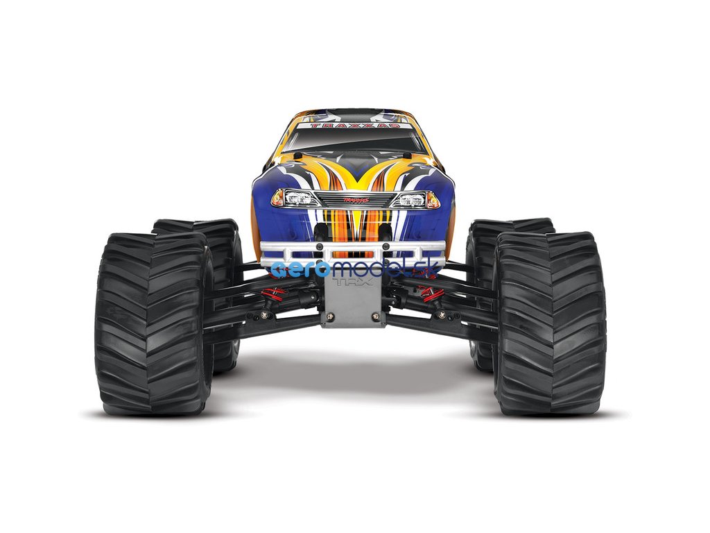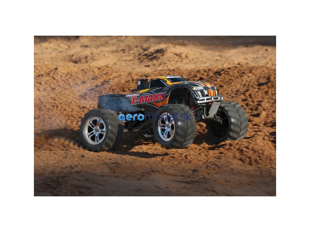Monster Truck Traxxas T-Maxx 2.5 Nitro 4WD je špičkový nástroj k vítězství. Vyniká výkonným závodním motorem TRX 2.5 s laděným výfukem, tuhý podvozek je ze 3.2 mm silného 6061-T6 modře eloxovaného hliníku. Obří pneumatiky o průměru 160 mm poskytují maximální přilnavost v terénu, auto má velkou světlo výšku, která mu nebrání projíždět i ty největší nerovnosti. Nový T-Maxx má neuvěřitelné zrychlení a skvělé vedení na trati i díky náhonu 4WD a velkému rozvoru. Model dosahuje rychlosti až 64 km/hod!