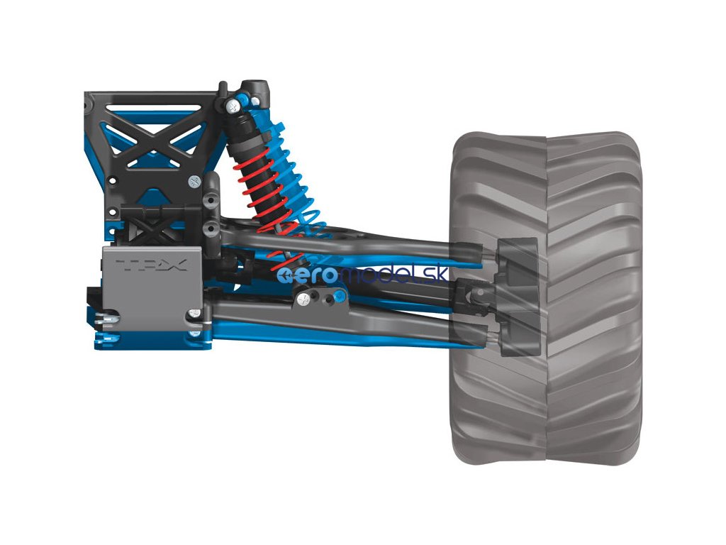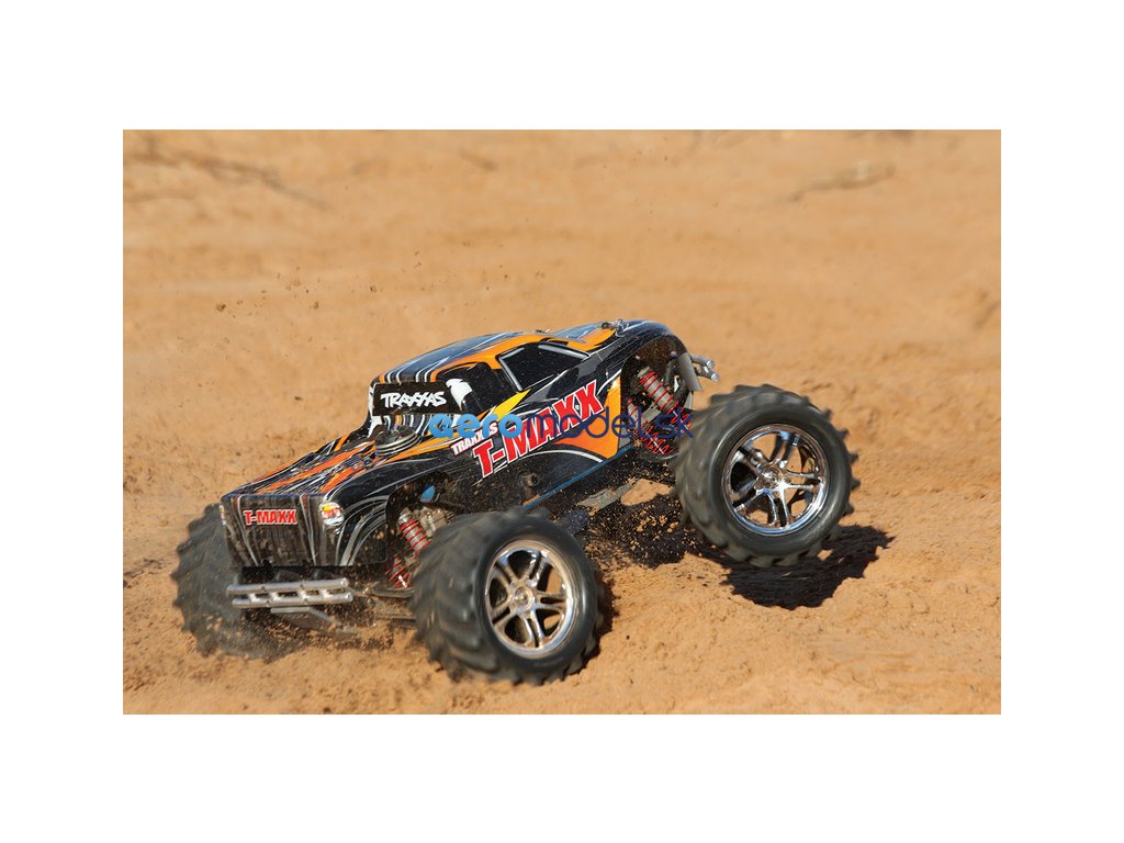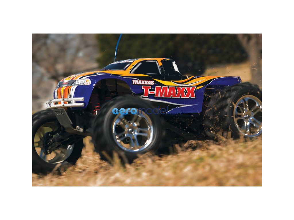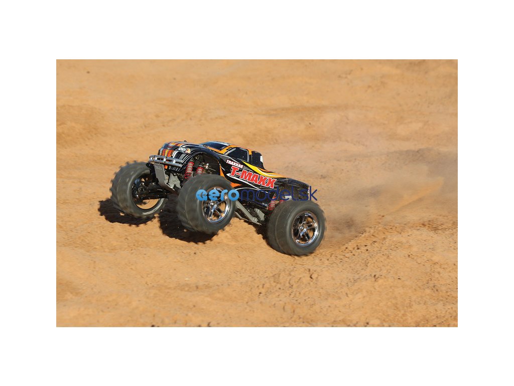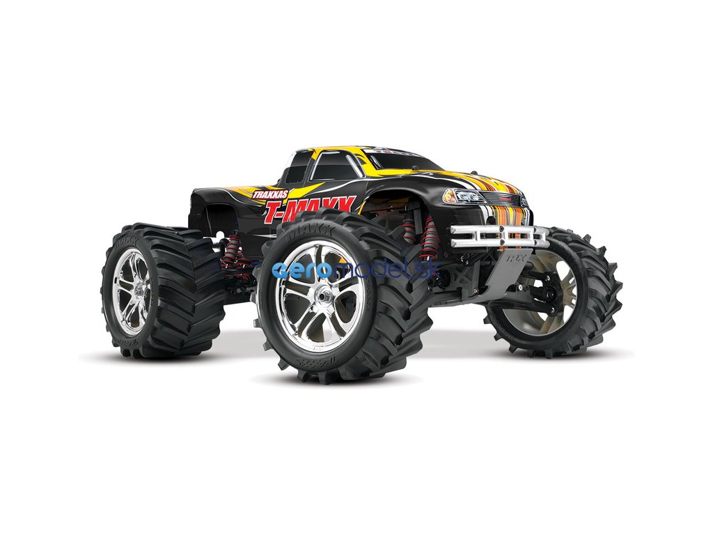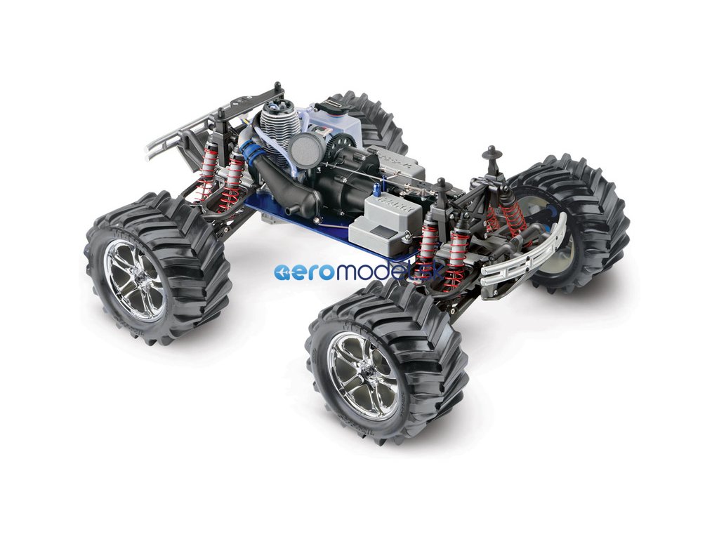 Monster Truck Traxxas T-Maxx 2.5 Nitro 4WD je špičkový nástroj k vítězství. Vyniká výkonným závodním motorem TRX 2.5 s laděným výfukem, tuhý podvozek je ze 3.2 mm silného 6061-T6 modře eloxovaného hliníku. Obří pneumatiky o průměru 160 mm poskytují maximální přilnavost v terénu, auto má velkou světlo výšku, která mu nebrání projíždět i ty největší nerovnosti. Nový T-Maxx má neuvěřitelné zrychlení a skvělé vedení na trati i díky náhonu 4WD a velkému rozvoru. Model dosahuje rychlosti až 64 km/hod!