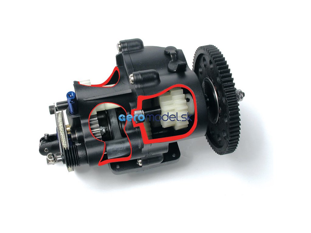 Model je osazen celkem třemi digitálními servy. Jedno servo 2055 pro plyn/ brzdu a druhé servo pro řízení. Třetí servo ovládá řazení rychlostí a zpátečku
