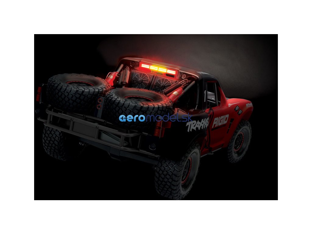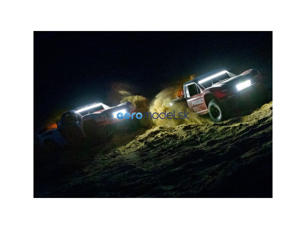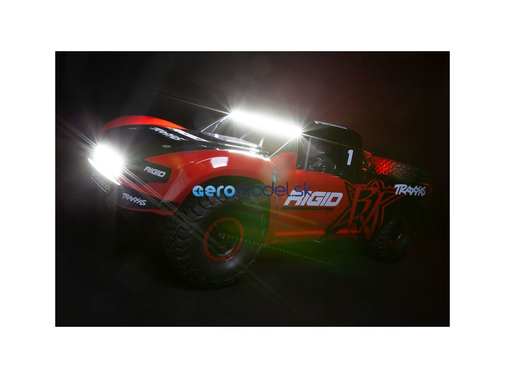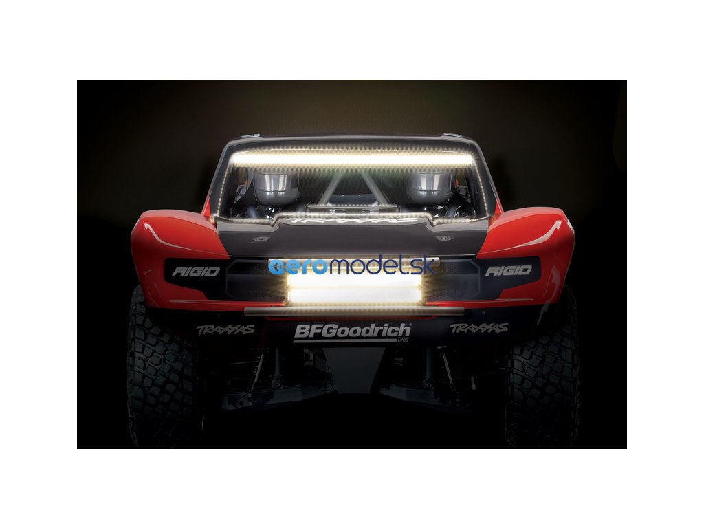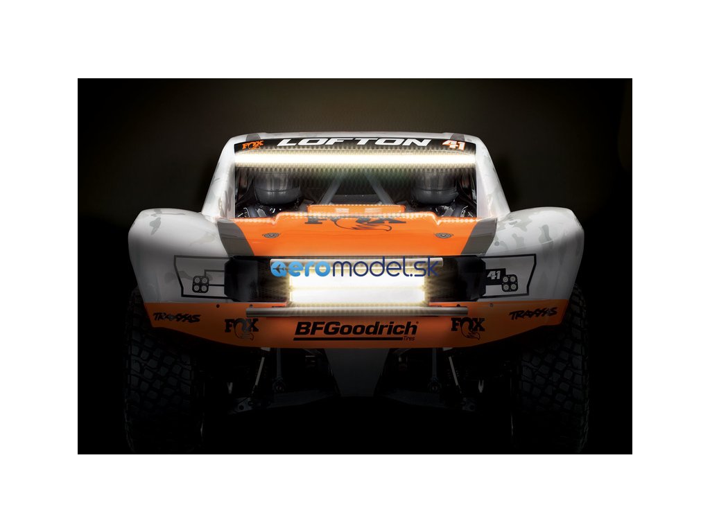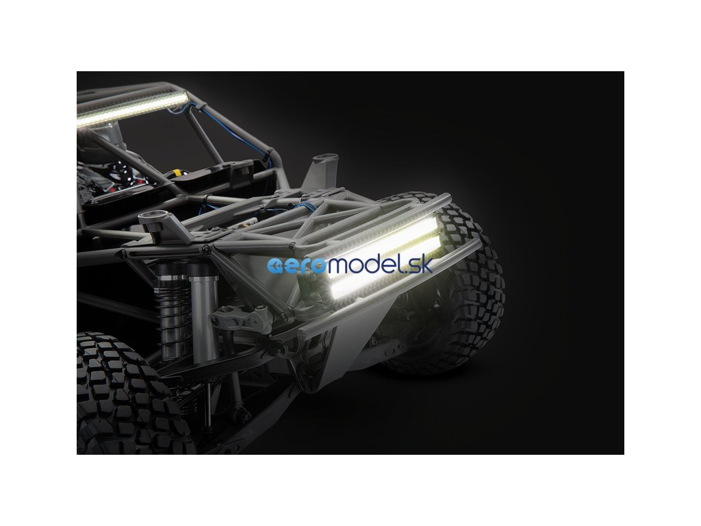 LED osvětlení nejen perfektně osvítí cestu před vámi, ale také budete mít lepší přehled o pozici modelu, díky žlutým koncovým světlům. Funkční brzdová světla se spínají skutečně jen při brzdění a ne při zpátečce. Kompletní LED osvětlení instalované na tomto RC modelu auta, obsahuje přední LED lištu na nárazník (52 diod), zahnutou střešní LED lištu (52 diod), multifunkční zadní brzdovou lištu (24 červených diod, 24 žlutých diod), napájecí řídící jednotku.