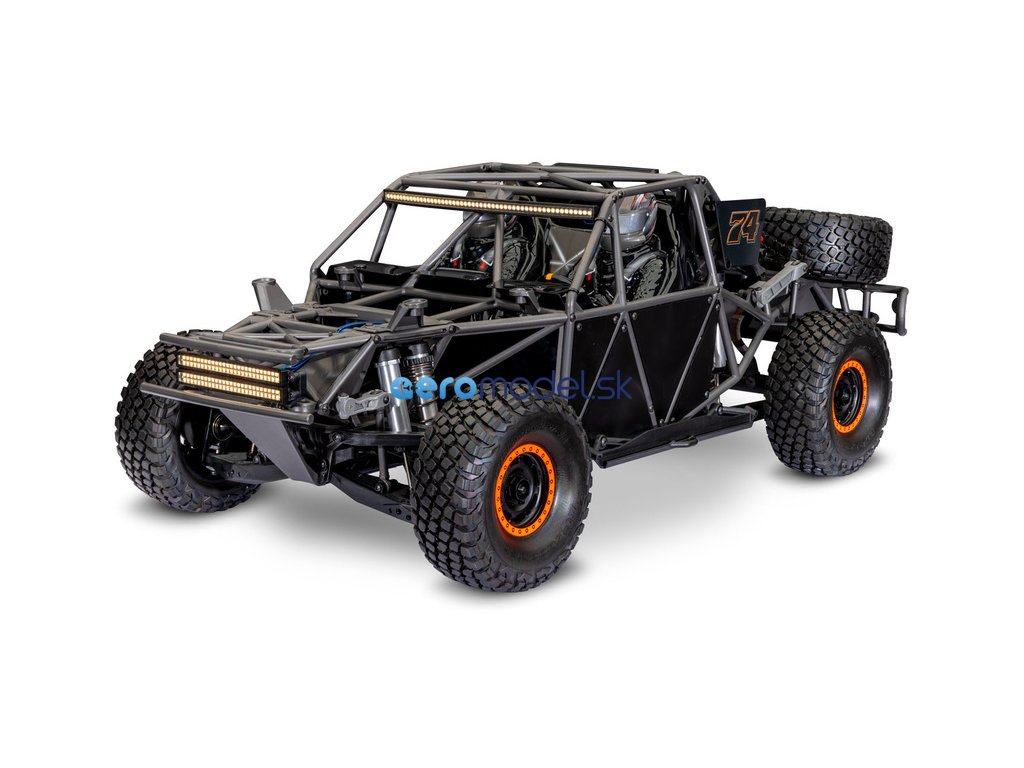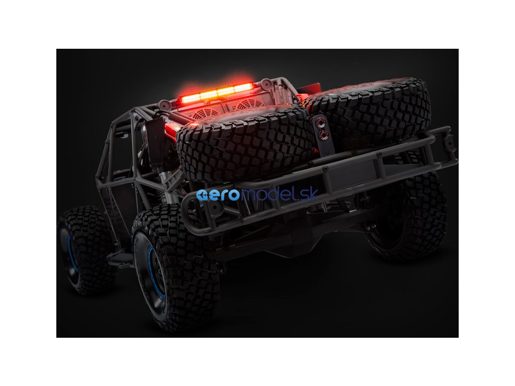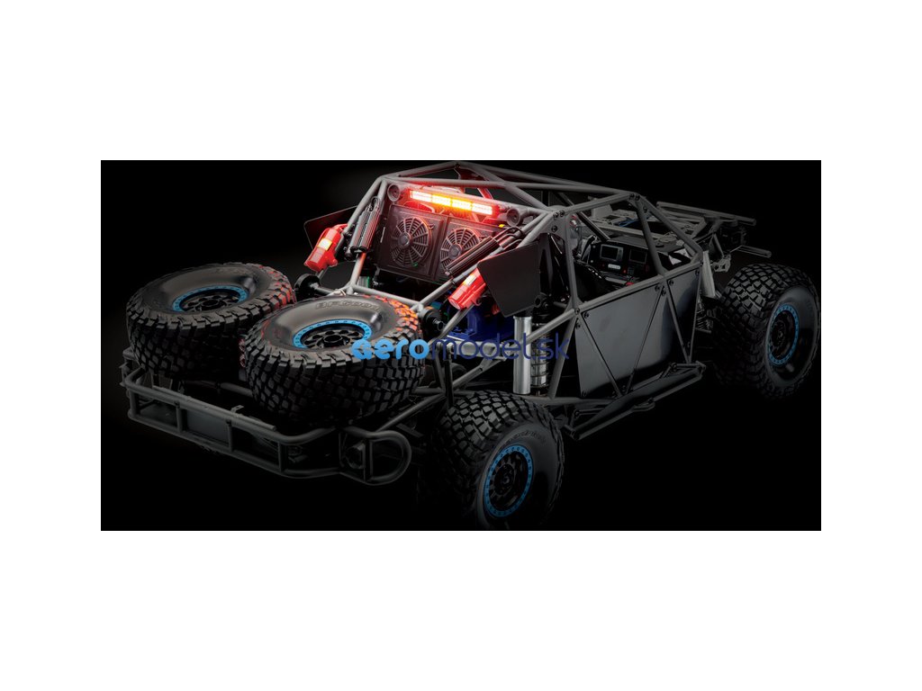 RC model auta Traxxas Unlimited Desert Racer. Nejrealističtější zpracování pouštního závoďáku s autentickou klecí, kabinou a zavěšením. Kompletní chytré LED osvětlení s funkčními brzdovými světly. Výkonný střídavý motor a regulátor VXL-6S. Přijímač TSM, vysílač TQi. Rychlost až 80 km/h