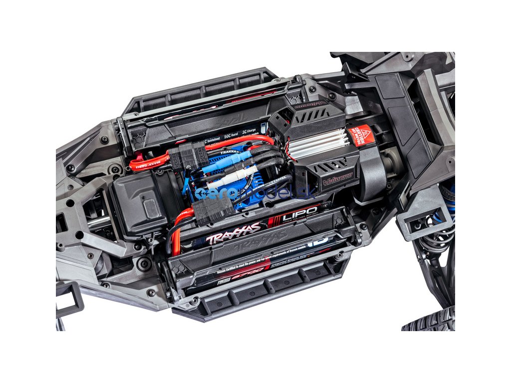 Model poháňa špeciálne upravený nový regulátor VXL-8S s ostrejšou charakteristikou a výkonný bezkartáčový motor Velineon 1200XL. Programovateľný vysielač Traxxas TQi umožňuje doplnenie modulu Bluetooth (predáva sa samostatne) na pripojenie modelu k mobilnému telefónu a zobrazenie telemetrických údajov, ako je rýchlosť jazdy alebo otáčky motora.