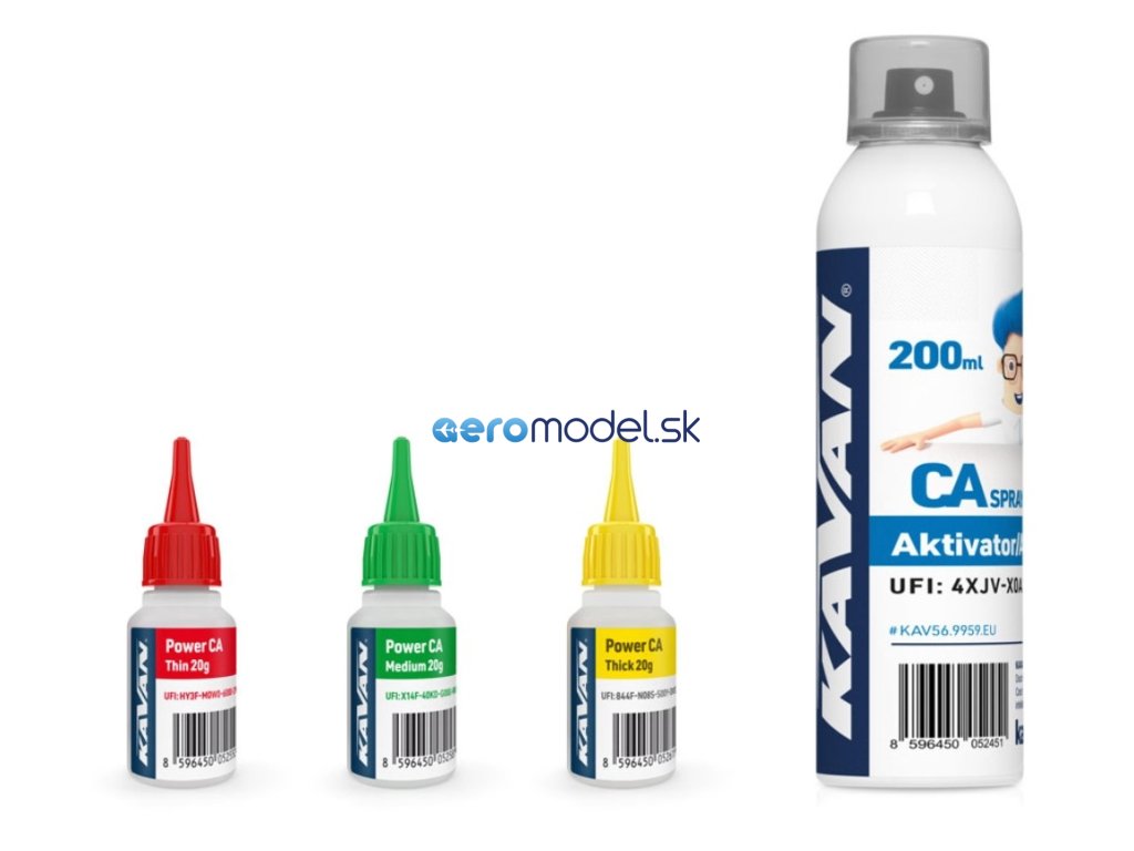 KAVAN: POWER CA PACK sekundové lepidlo 3x20g (R, S, H) + aktivátor 200ml (EN)