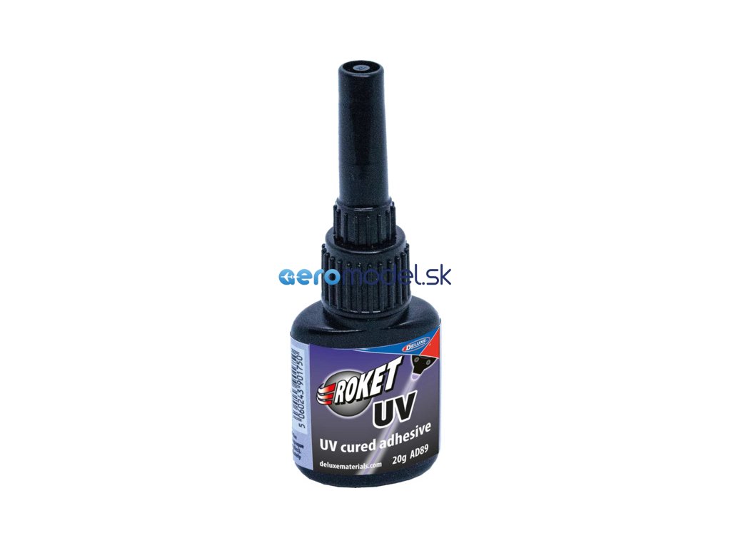 Lepidlo Roket UV od spoločnosti Deluxe Materials je UV vytvrdzujúce lepidlo. Roket UV vytvára úplne číry spoj, lepí tvrdé plasty, kompozitné materiály, drevo a kovy.