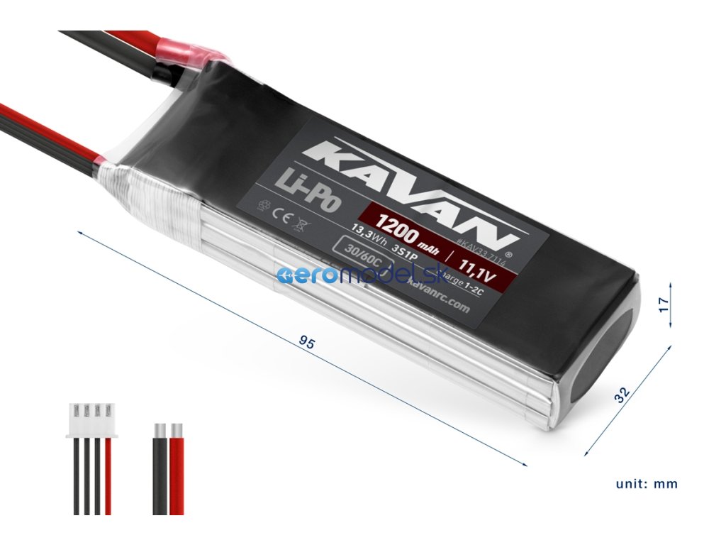 Lithiumpolymerové akumulátory KAVAN řady 30/60C spolehlivě pokrývají potřeby rekreačního modeláře: mají maximální vybíjecí proud 30C, možnost rychlého nabíjení 2C, širokou škálu kapacit (350-3250 mAh), výbornou dlouhodobou životnost a příznivou cenu.