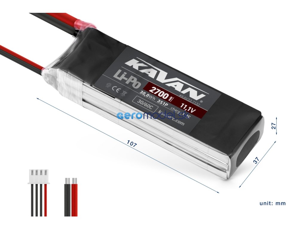 Lithiumpolymerové akumulátory KAVAN řady 30/60C spolehlivě pokrývají potřeby rekreačního modeláře: mají maximální vybíjecí proud 30C, možnost rychlého nabíjení 2C, širokou škálu kapacit (350-3250 mAh), výbornou dlouhodobou životnost a příznivou cenu.