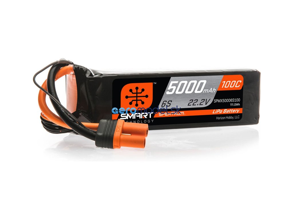 LiPo akumulátor Spektrum 22,2 V 5000 mAh 100C s technologií Smart pro RC letadla a vrtulníky. Technologie Smart zjednodušuje a zrychluje nabíjení a prodlužuje životnost akumulátoru. Konektor IC5.