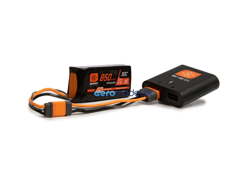 Spektrum Smart PowerStage G2 Air 2 je sada LiPo akumulátora 11,1V 4000 mAh 30C IC3 a nabíjača Spektrum Smart S120 20W USB-C. Balík s technológiou Smart G2 s bezpečným a veľmi jednoduchým nabíjaním pre RC modely lietadiel.