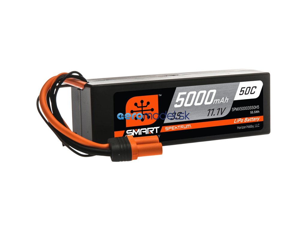 LiPo akumulátor Spektrum 11,1 V 5000 mAh 50C v pevnom puzdre s technológiou Smart pre RC autá a lode. Technológia Smart uľahčuje používanie, rýchlejšie nabíjanie a predlžuje životnosť batérie. Konektor IC5, nové rozmery 138 x 46 x 35 mm.