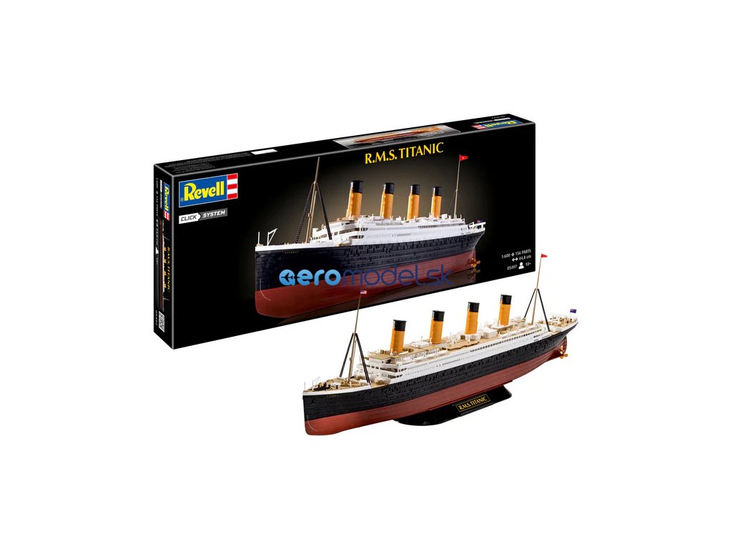 Plastikový model Revell 05497 - EasyClick R.M.S. Titanic v měřítku 1:600. Stavebnice obsahuje 156 dílků, obtížnost 2.