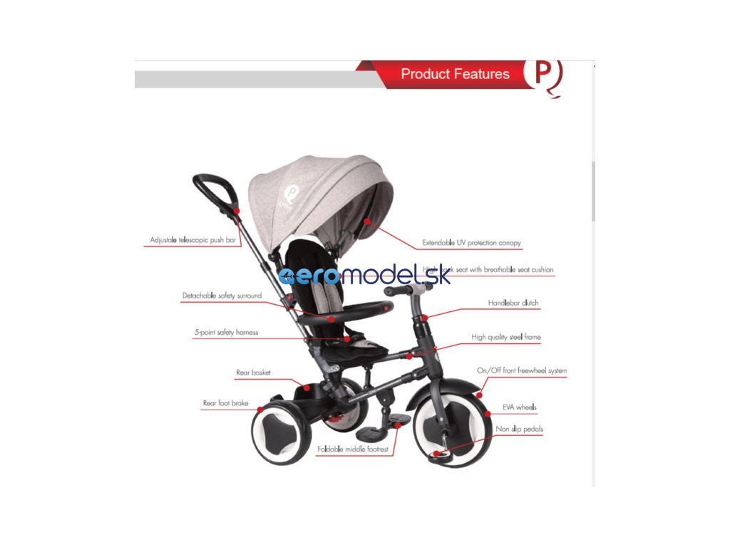 Tato tříkolka bude růst s vaším dítětem! Nejprve můžete dítě vozit a zaaretovat šlapátka aby se netočila. Poté co si dítě dostatečně zvykne, může již samo šlapat a jezdit a Vy jej jistí rodičovskou tyčí. Jakmile se dítě zdokonalí, demontujete rodičovskou vodící tyč a zadní opěrku a máte plnohodnotnou tříkolku.