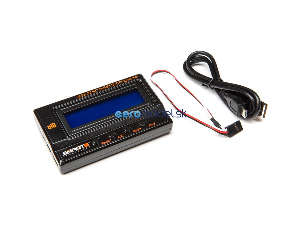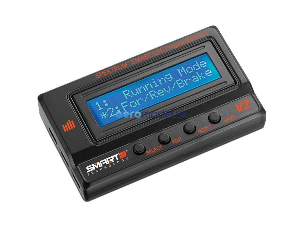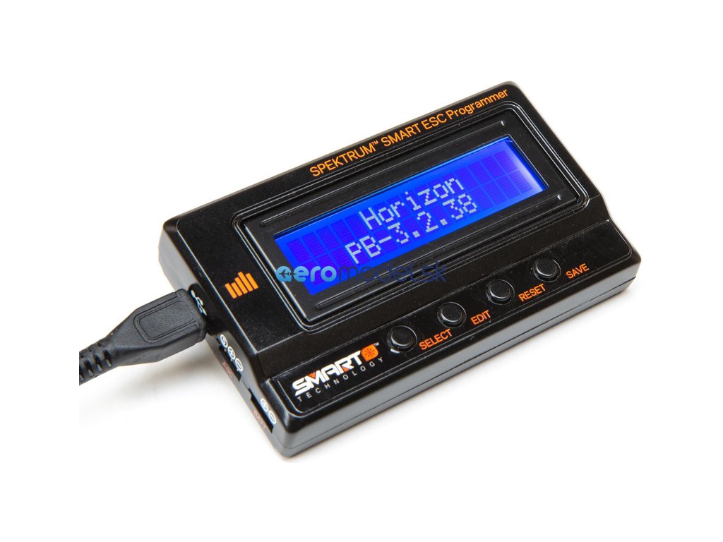 Programovací karta V2 pro Smart regulátory Spektrum Avian a Spektrum Firma. Umožňuje snadno nastavit veškeré parametry regulátorů. Po připojení programátoru k počítači pomocí přiloženého kabelu USB kabelu, lze provést aktualizaci firmware. Aktuální aplikace pro PC je k dipozici ke stažení zde.