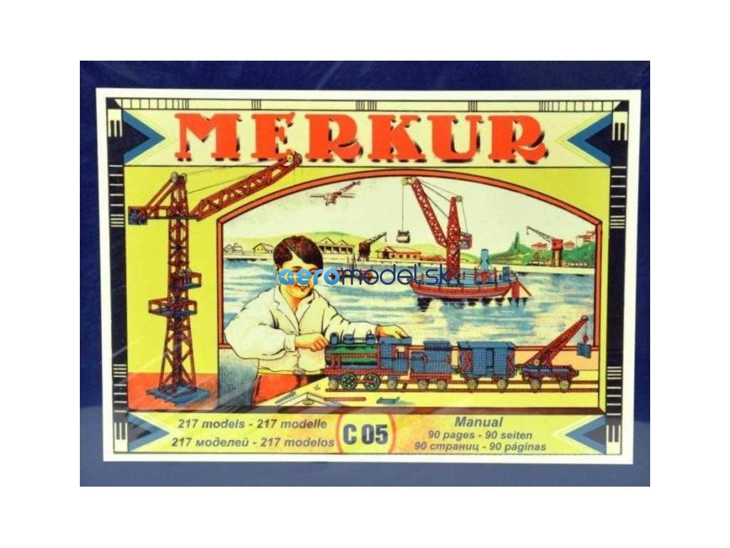 Součástí stavebnice MERKUR CLASSIC C05 je 90-stránková návodová knížka vyrobená ve stylu třicátých let. Velká návodová knížka je koncipovaná pro stavebnice MERKUR Classic C03, C04, C05 - 183 modelů. Návody jsou obrázkové a doplněné původním textem v anglickém, německém, španělském a ruském jazyce. Stavebnice obsahuje 213 dílků. Věk: 6+. Nevhodné pro děti mladší 3 let.