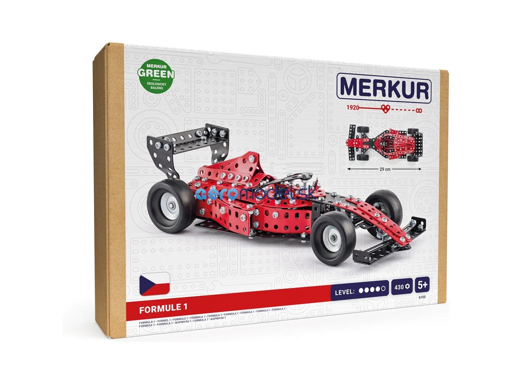 Klasická česká stavebnice Merkur - Formule. V balení najdete podrobný návod, Merkur sadu nářadí a unikátní Merkur díly. Merkur díly jsou univerzální a tak vás neomezí v jakékoli modifikaci a nápadu. Stavebnici tak můžete sestavit podle návodu nebo podle svých představ.