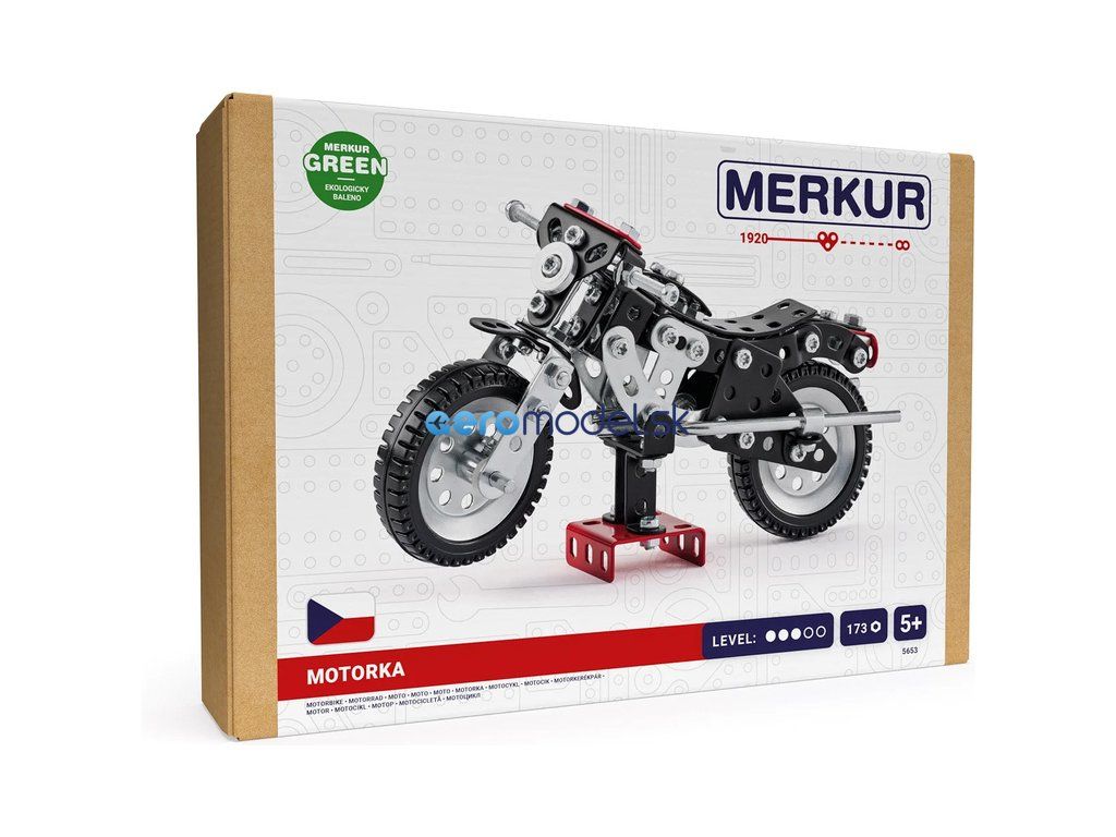 S kovovou stavebnicí Merkur se můžeš i Ty na chvíli stát motorkářem a sestavit si model motorky. Pohyblivá kola, elegantní červené provedení. Díky pohyblivým řídítkům, je možné zatáček doleva a doprava. Praktický stojánek, na který je možné motorku odložit. Se sestaveným modelem si lze hrát, je velmi odolný. Se sestaveným modelem si lze hrát, je velmi odolný. V balení najdete podrobný návod. Merkur díly jsou univerzální a tak vás neomezí v jakékoli modifikaci a nápadu. Stavebnici tak můžete sestavit podle přiloženého návodu nebo čistě podle svých představ.
