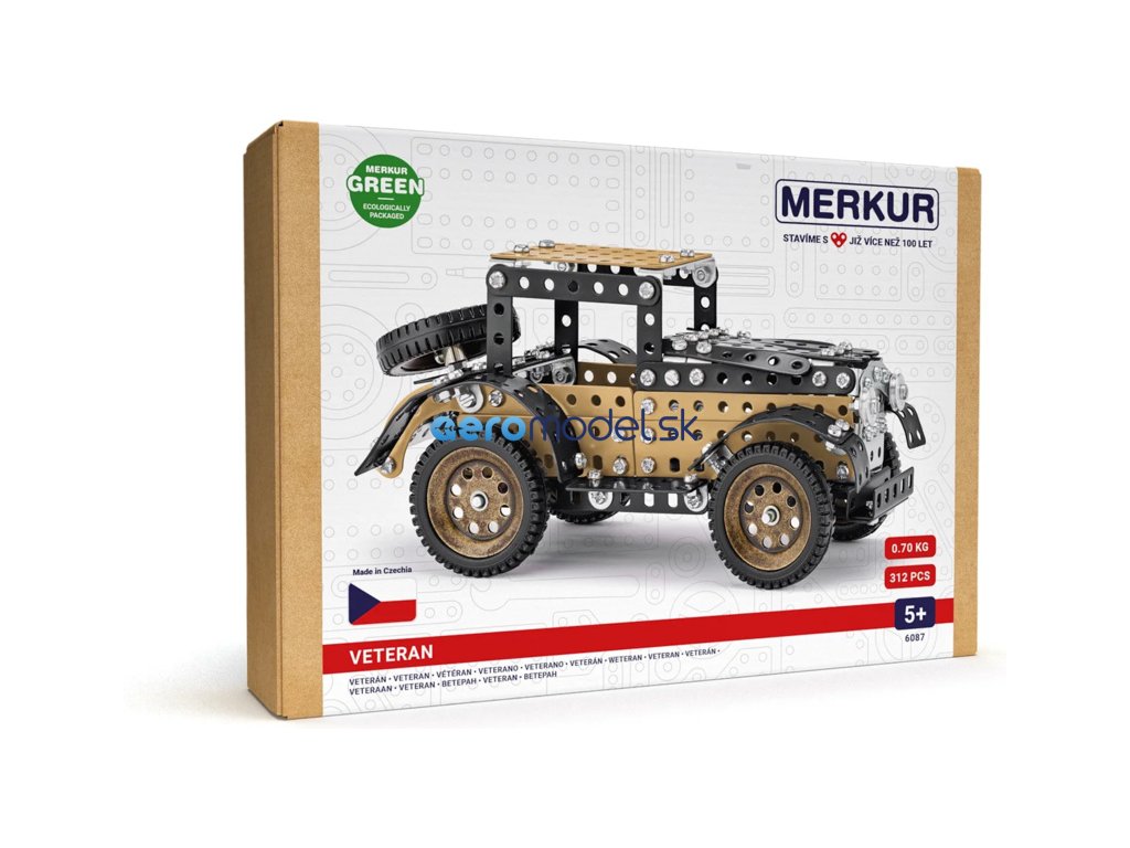 Klasická česká stavebnice Merkur - Veterán. V balení najdete podrobný návod, Merkur sadu nářadí a unikátní Merkur díly. Merkur díly jsou univerzální a tak vás neomezí v jakékoli modifikaci a nápadu. Stavebnici tak můžete sestavit podle návodu nebo podle svých představ.