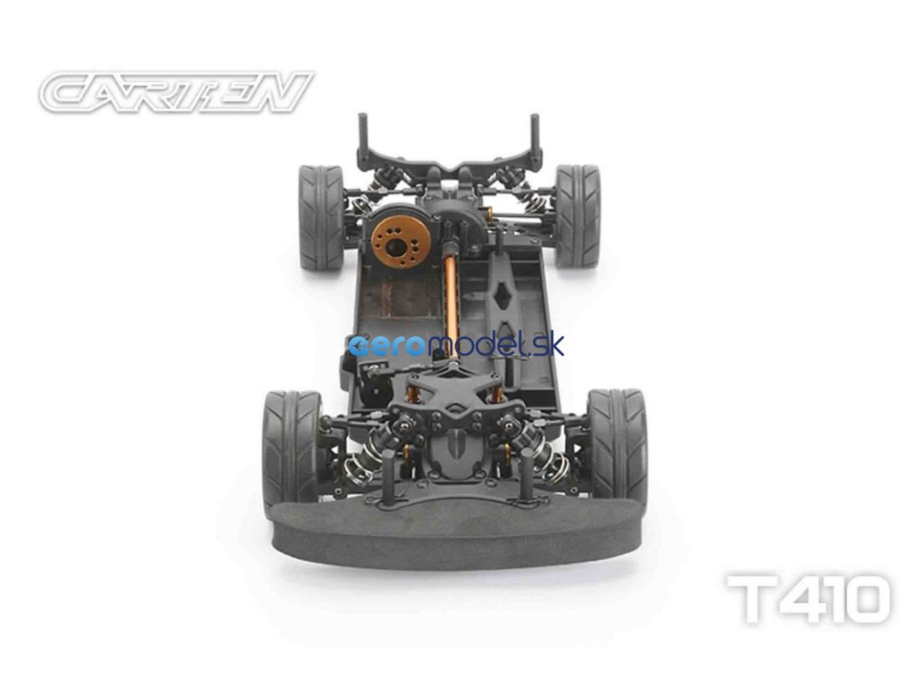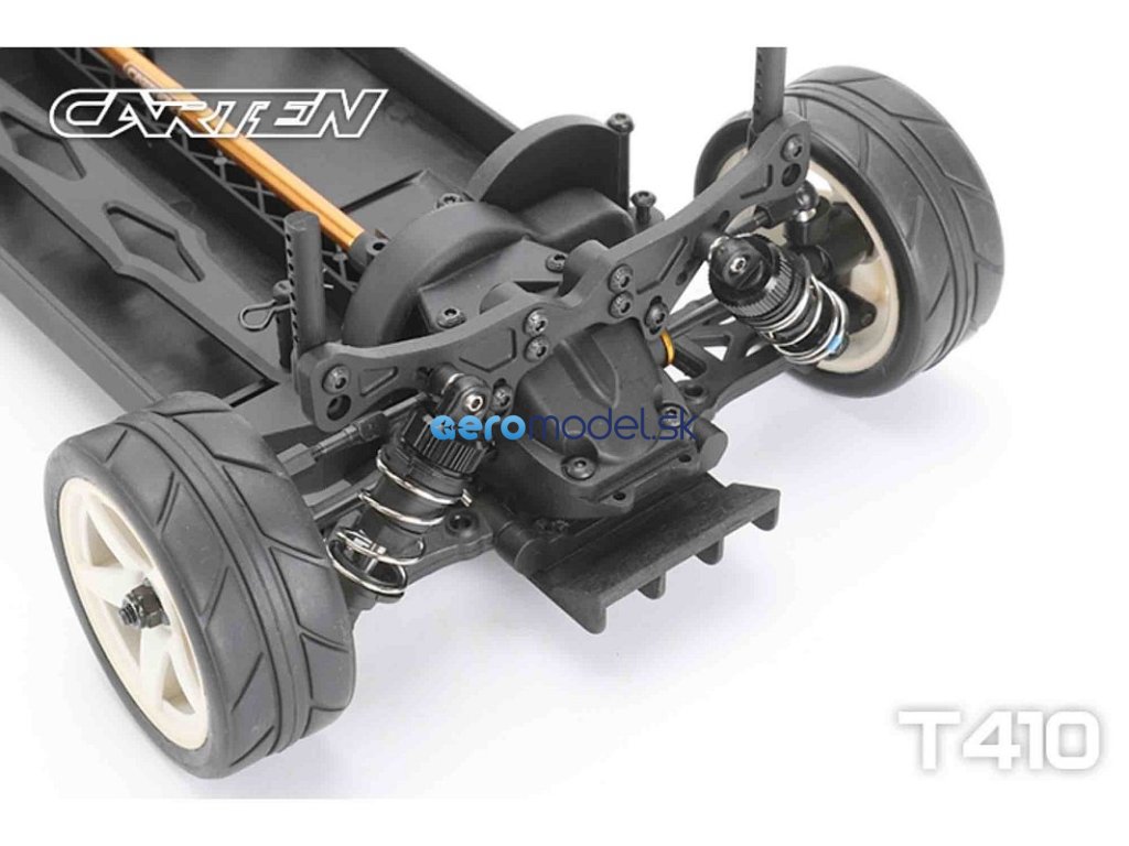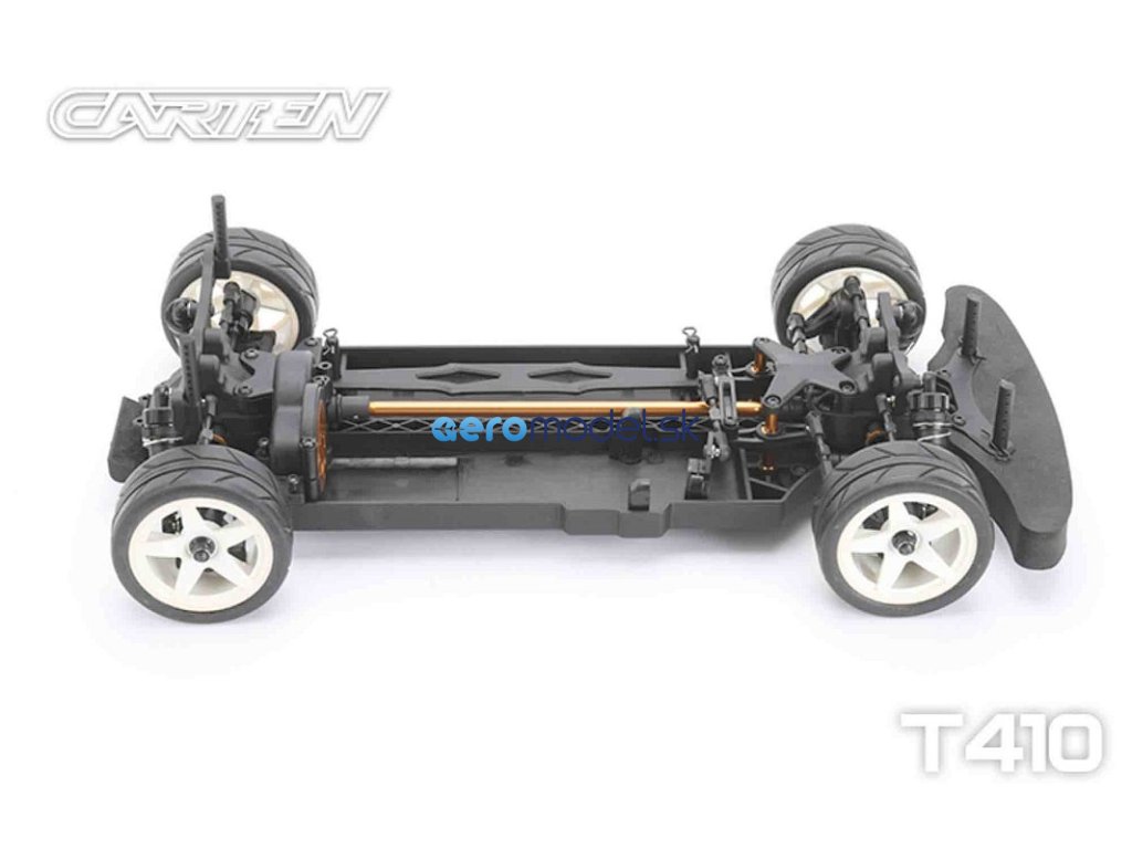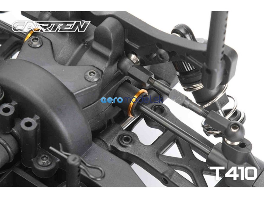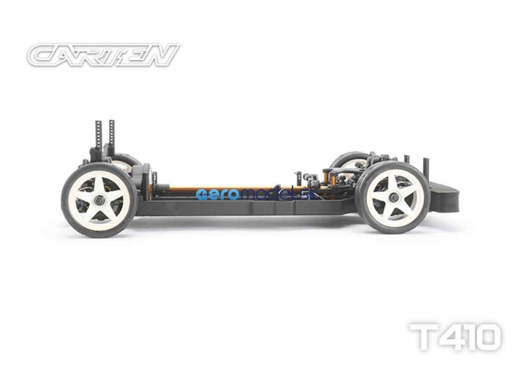 CARTEN T410 je základní model naší řady Touring Car. Kardanový pohon pro co nejplynulejší hnací ústrojí s minimálním odporem. Ten je podpořen kuličkovými ložisky v každé části vozu. Kuličkové diferenciály zajišťují možnost vyladění pro jakékoli podmínky na trati.