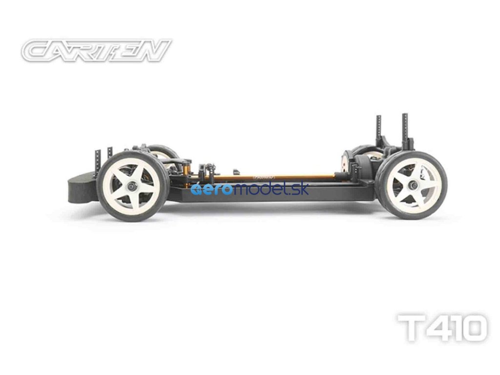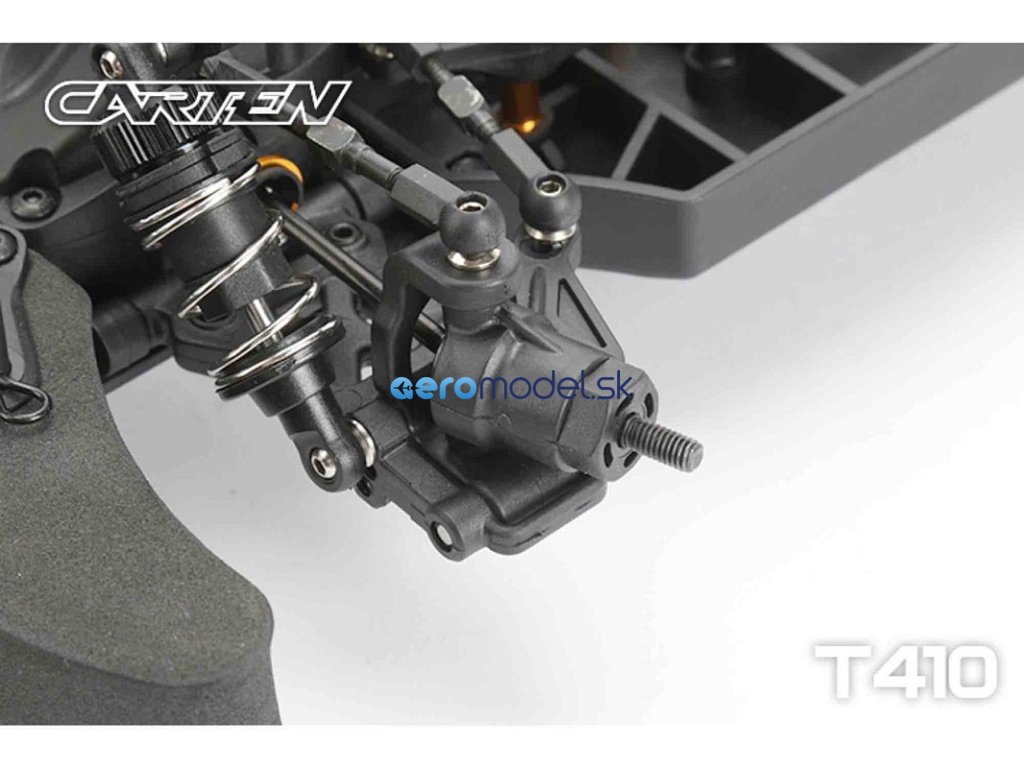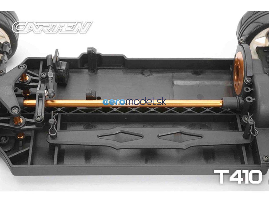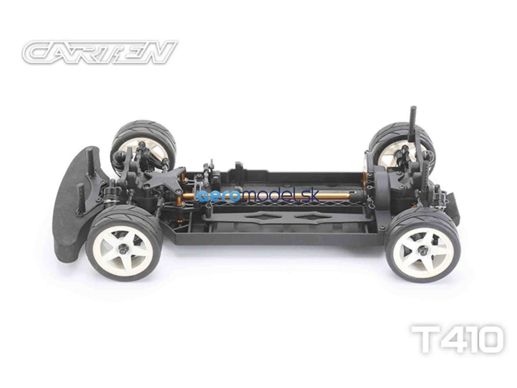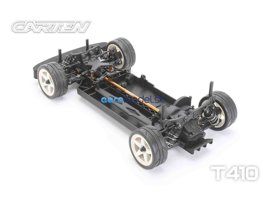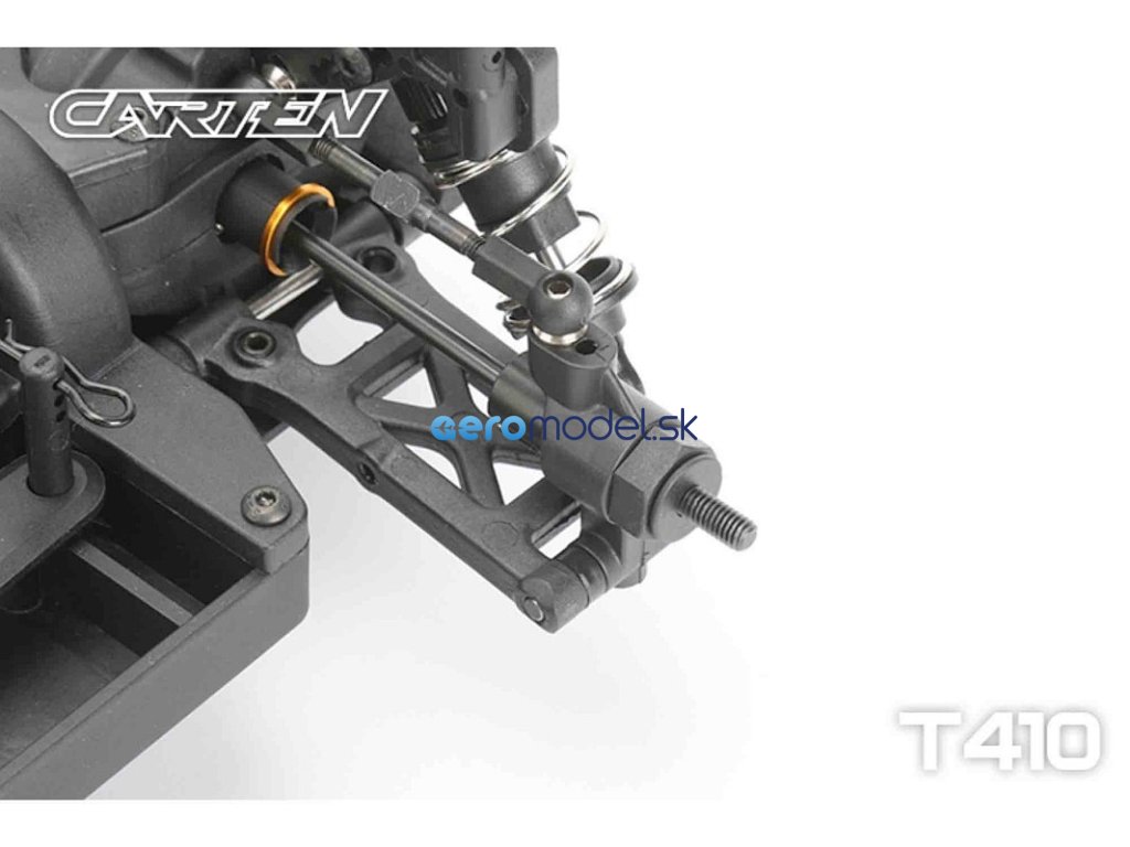 CARTEN T410 je základní model naší řady Touring Car. Kardanový pohon pro co nejplynulejší hnací ústrojí s minimálním odporem. Ten je podpořen kuličkovými ložisky v každé části vozu. Kuličkové diferenciály zajišťují možnost vyladění pro jakékoli podmínky na trati.
