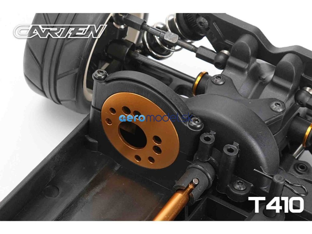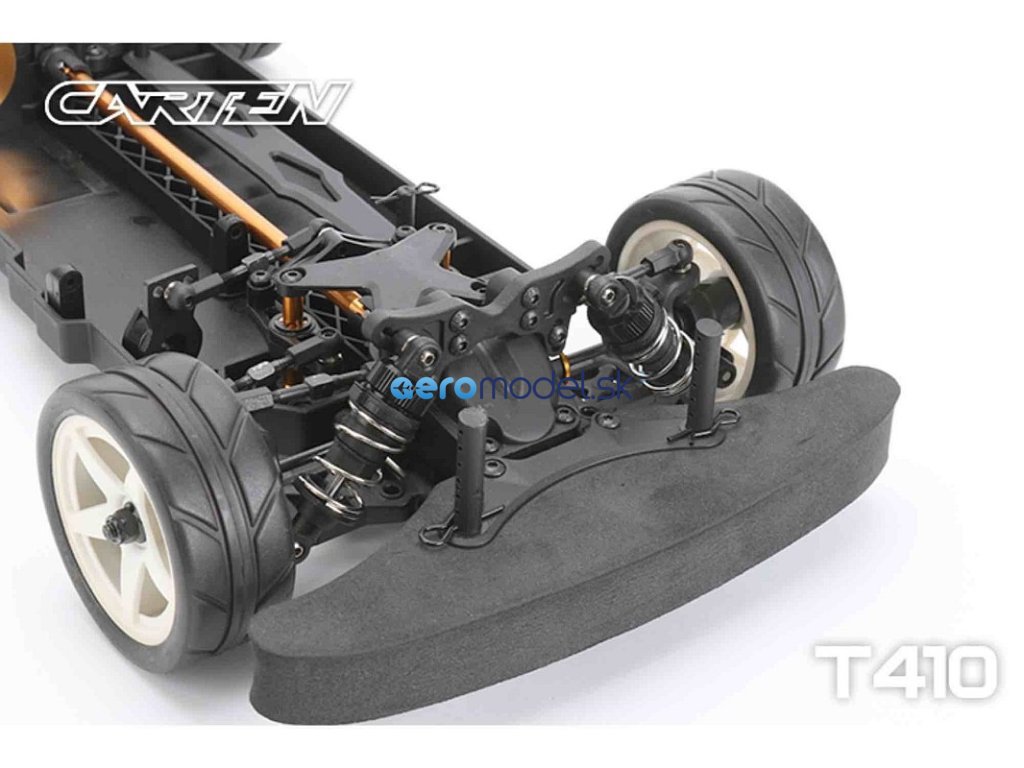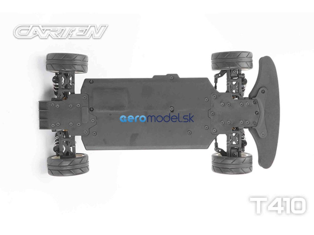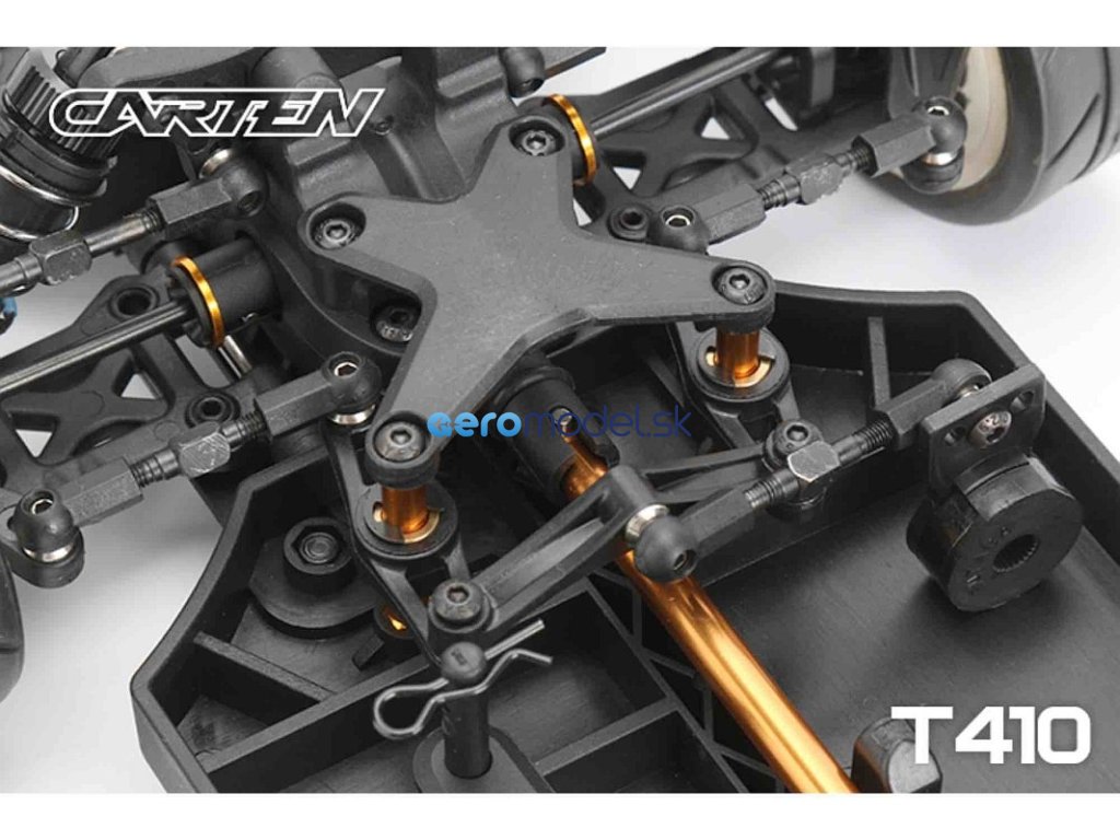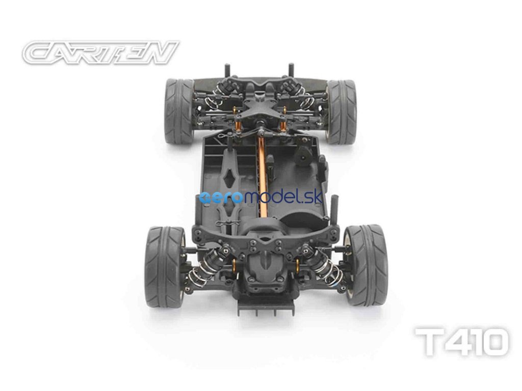 CARTEN T410 je základní model naší řady Touring Car. Kardanový pohon pro co nejplynulejší hnací ústrojí s minimálním odporem. Ten je podpořen kuličkovými ložisky v každé části vozu. Kuličkové diferenciály zajišťují možnost vyladění pro jakékoli podmínky na trati.