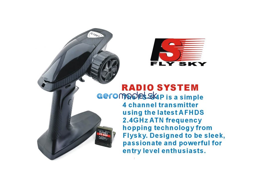 - Voděodolné elektronické komponenty a 4kanálové 2,4GHz rádio FS G4P se systémem fail-safe.