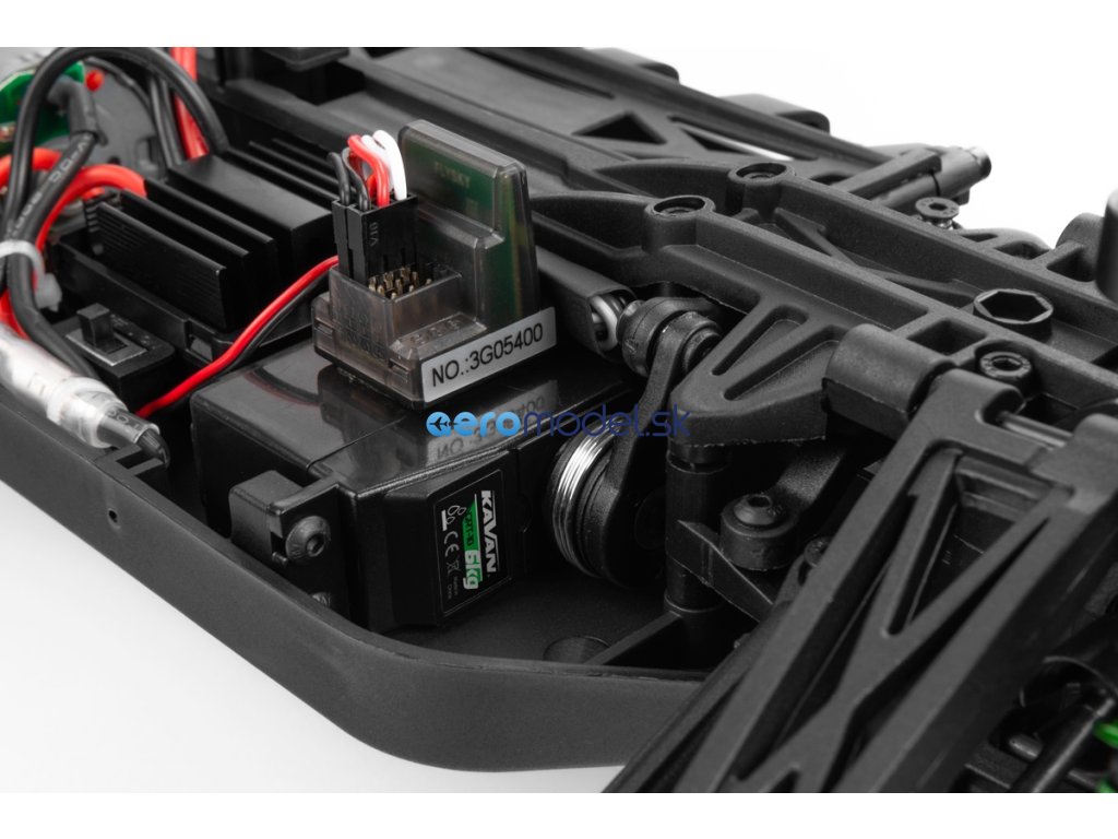 Model je vybaven spolehlivým 6kg servem a 40A regulátorem, které zajišťují kontrolu nad řízením za všech okolností.