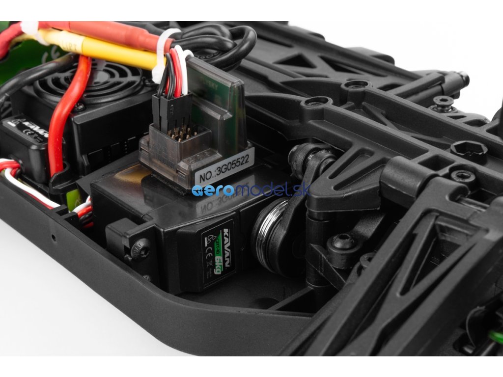 Model je vybaven spolehlivým 6kg servem a 50A regulátorem, které zajišťují kontrolu nad řízením za všech okolností.