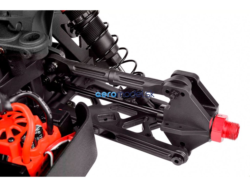 Jeho hybridní hliníkový držák motoru nabízí tři polohy motoru pro přesné nastavení vůle pastorku. Zesílené hnací ústrojí s ocelovými unašeči a robustním hlavním převodovým převodem 52T zajišťuje dlouhou životnost. Široké těhlice z Kagamy a Sketeru dodávají stabilitu a schopnosti v terénu, zatímco nové wheelie kolečko pomáhá zvládat obrovský výkon. Od střídavého motoru Kuron 725 až po regulátor Torox 135 - každá součástka přispívá ke vzrušující maximální rychlosti přes 80 km/h. Vysílač CT2S 2,4 GHz, systém vyztužení podvozku a křídlo s vysokou přítlačnou silou doplňují balíček, takže Punisher4 je skutečným důkazem odkazu inovací a výkonu firmy Team Corally.