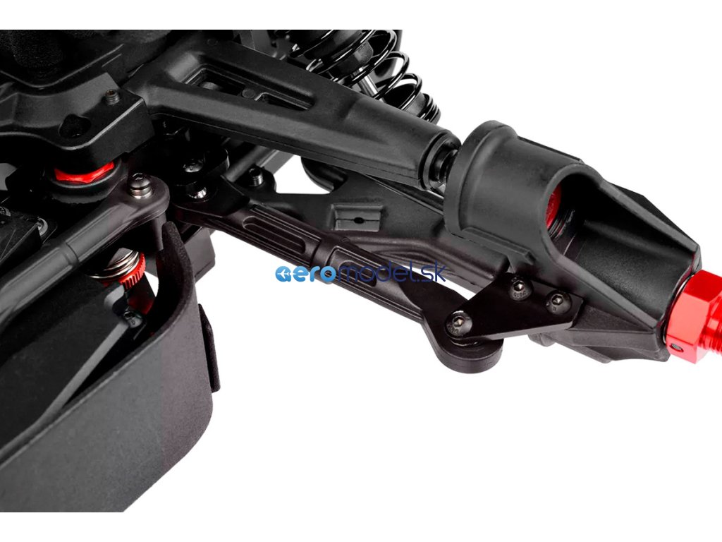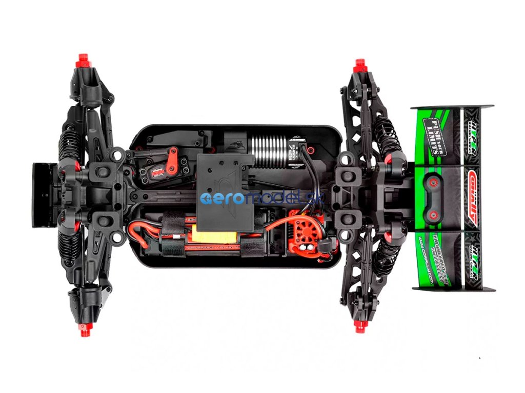 Jeho hybridní hliníkový držák motoru nabízí tři polohy motoru pro přesné nastavení vůle pastorku. Zesílené hnací ústrojí s ocelovými unašeči a robustním hlavním převodovým převodem 52T zajišťuje dlouhou životnost. Široké těhlice z Kagamy a Sketeru dodávají stabilitu a schopnosti v terénu, zatímco nové wheelie kolečko pomáhá zvládat obrovský výkon. Od střídavého motoru Kuron 725 až po regulátor Torox 135 - každá součástka přispívá ke vzrušující maximální rychlosti přes 80 km/h. Vysílač CT2S 2,4 GHz, systém vyztužení podvozku a křídlo s vysokou přítlačnou silou doplňují balíček, takže Punisher4 je skutečným důkazem odkazu inovací a výkonu firmy Team Corally.
