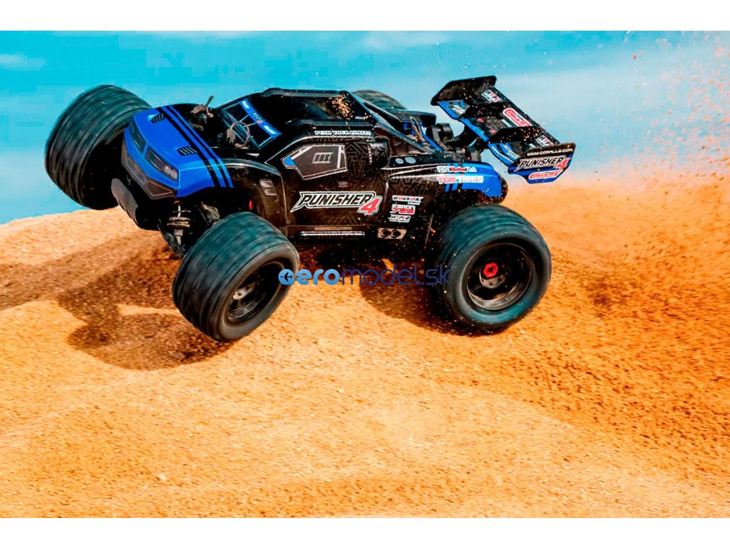 Punisher4, RC monster truck XL4S, je navržen pro začátečníky i zkušené bashery. Je postaven na stejném podvozku jako model Syncro4 a přináší inovativní funkce za bezkonkurenční cenu. Nové velkoobjemové kompozitové tlumiče, extrémně odolné kompozitové parohy tlumičů a zesílený systém výztuh podvozku jsou příkladem dokonalé kombinace odolnosti a výkonu. Díky výraznému hliníkovému podvozku v titanové barvě, ochranným deskám, novému wheelie kolečku a aerodynamickému křídlu Punisher4 nově definuje off-road styl.