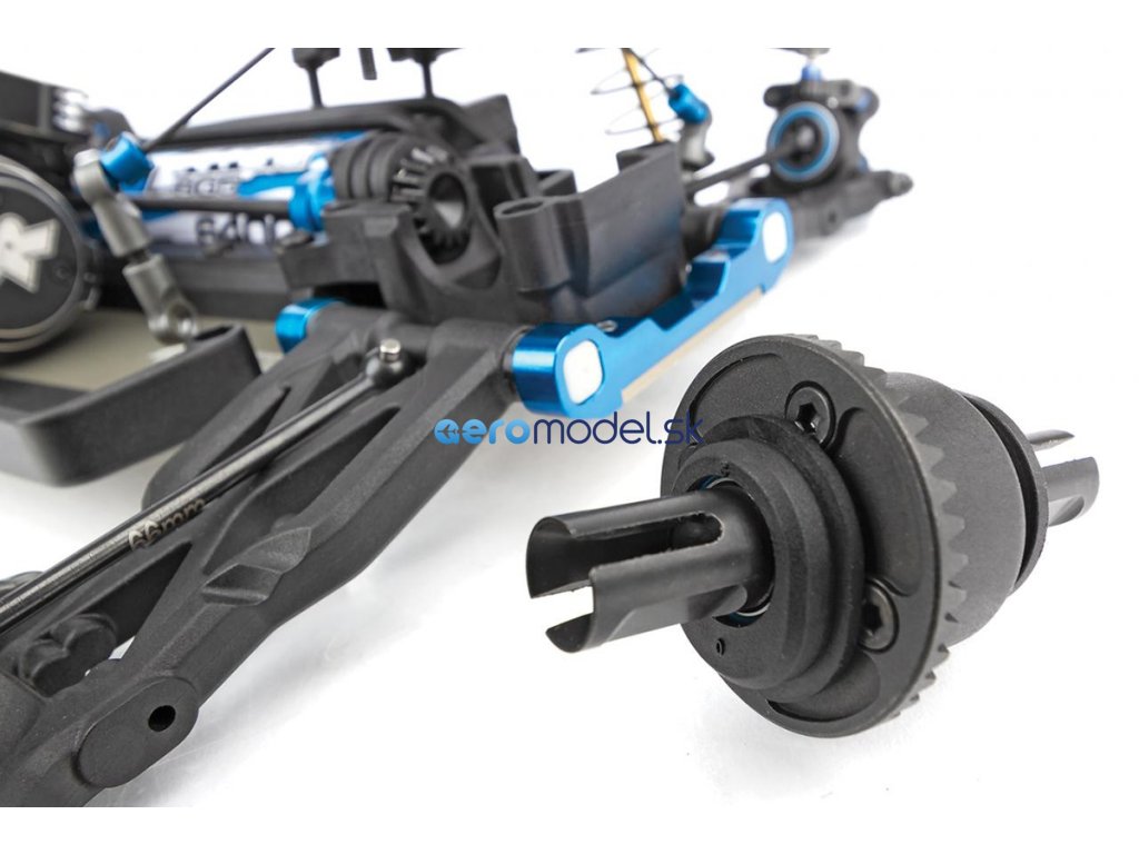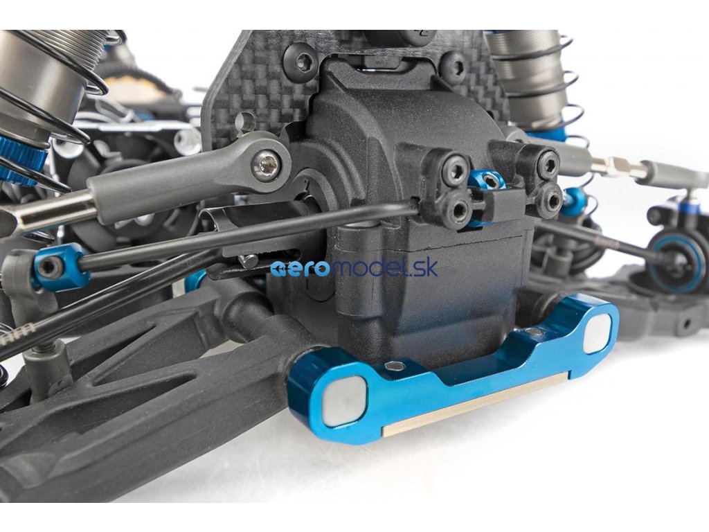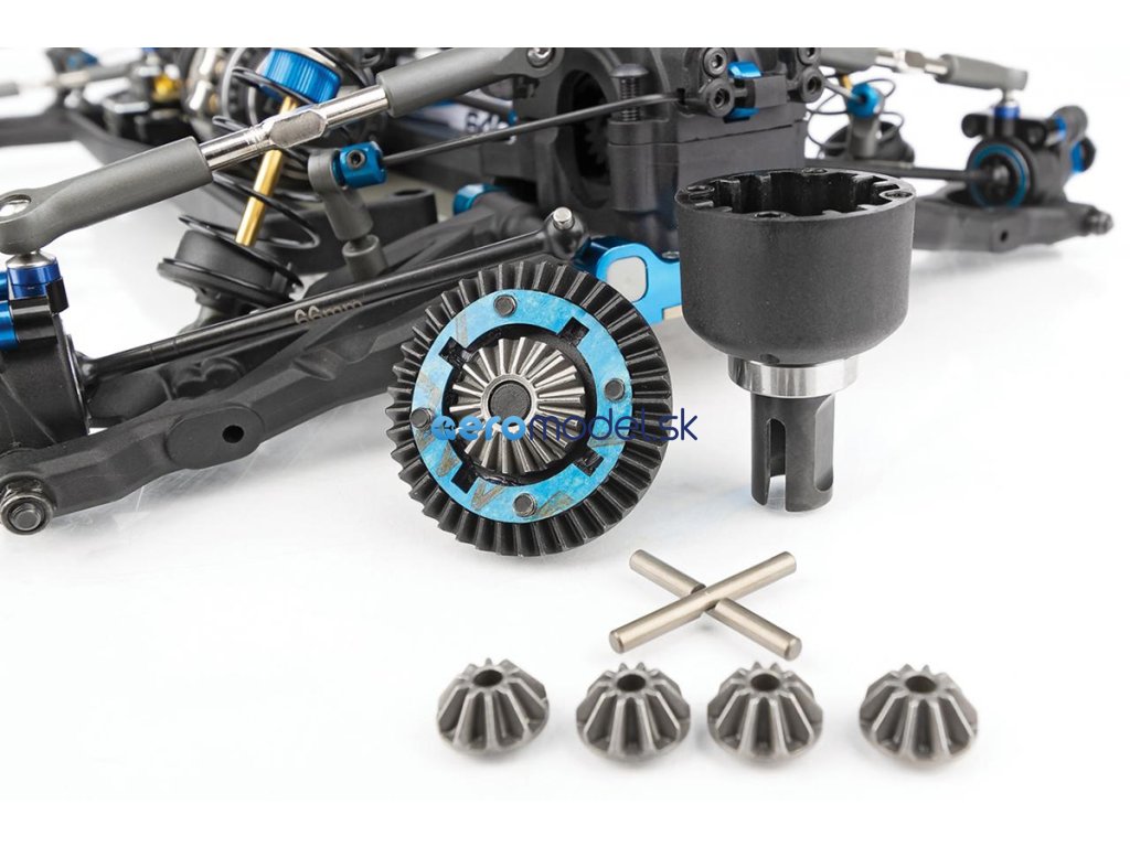 - Lehké lisované skříně převodovky vpředu i vzadu: Dvě přední skříně s pevnou výškou umožňující volbu výšky diferenciálu 0 a +2 mm. Jedna zadní skříň s vložkami ve stylu RC10B6 umožňující volbu výšky diferenciálu 0, +1, +2 a +3 mm.