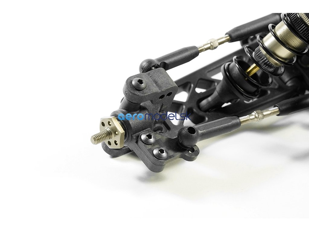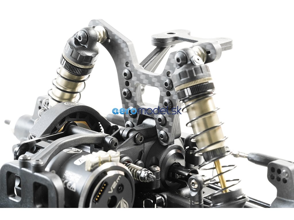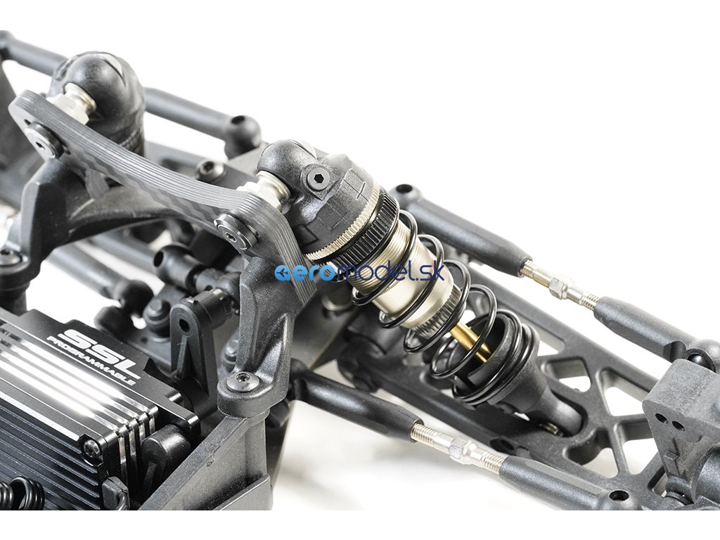 Součástí sady S12-2D EVO LIMITED je zcela nový 5,5mm systém kulových čepů. Součástí je také nastavitelná Ackermann deska a karbonové desky řízení. S12-2D EVO LIMITED má nová zakřivená spodní ramena, která zajišťují nižší polohu tlumičů, což vede ke snížení těžiště.