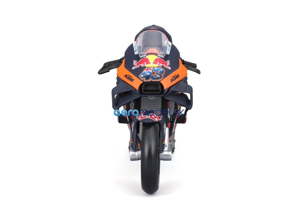 Model v měřítku 1:18 Maisto 36393 závodního motocyklu Maisto Red Bull KTM Factory Racing 2023 #43 Miller nejen pro sběratele. Detailní provedení, velmi přívětivá cena, délka 12 cm.