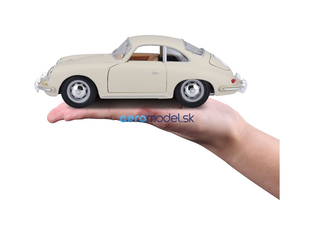 Kovový model auta 1:24 Bburago 18-22079 Porsche 356B Coupe (1961) nejen pro sběratele. Má otevírací dveře a kapotu, natáčení kol volantem je plně funkční. Barva modelu je krémová.