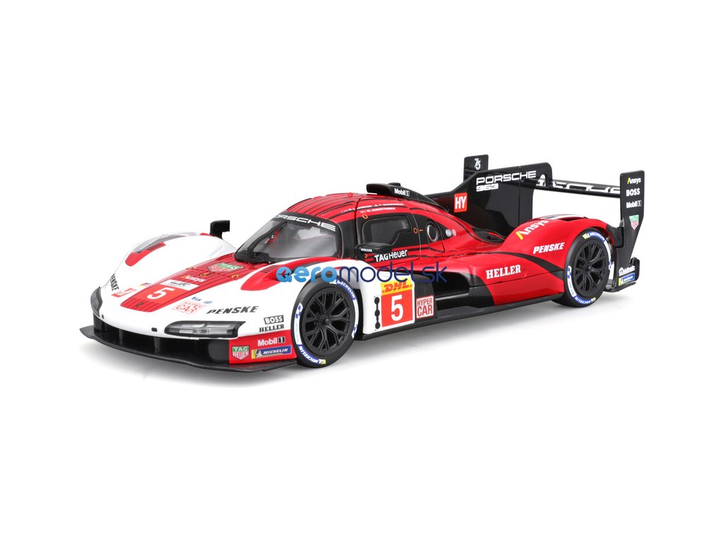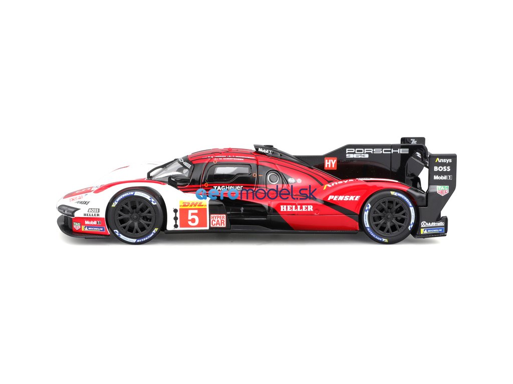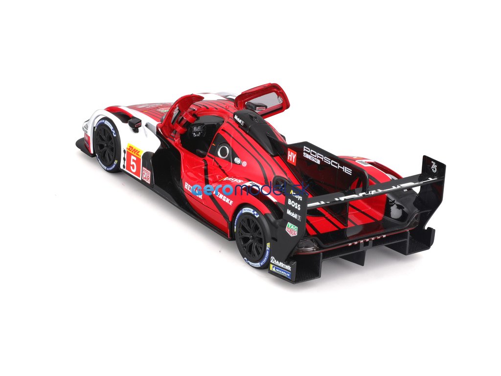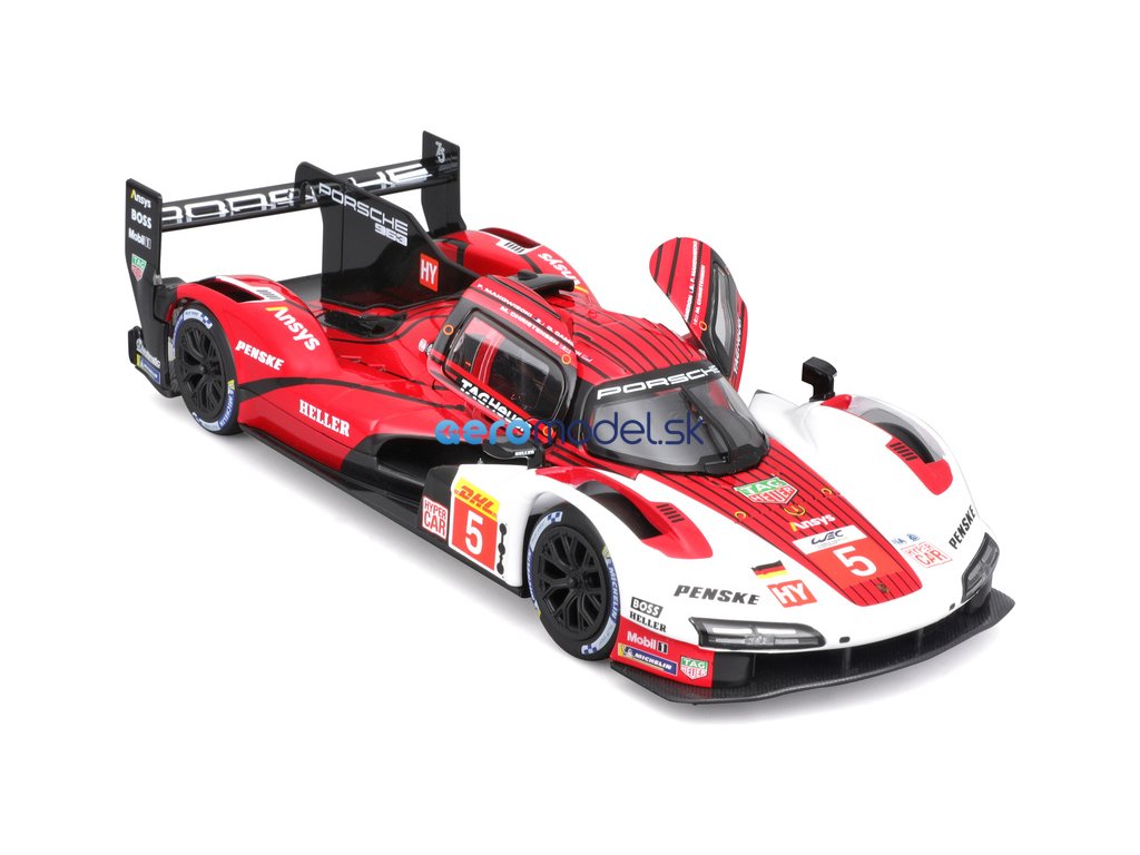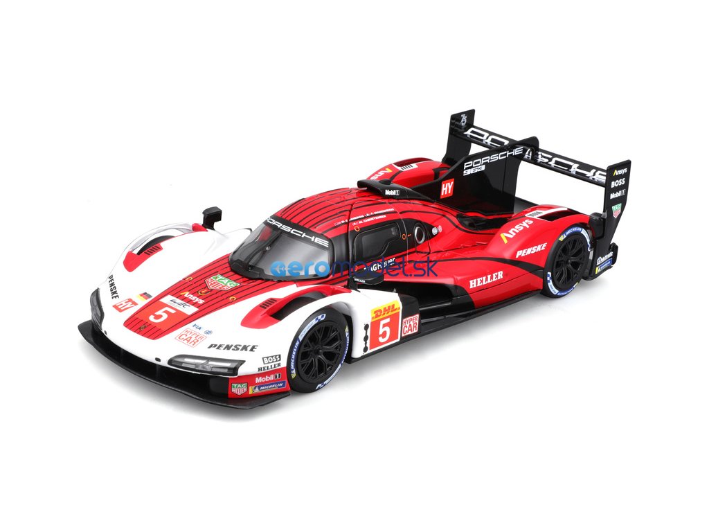 Kovový model auta 1:24 Bburago 18-28022 Porsche 963 nejen pro sběratele. Má otevírací dveře, barva modelu je #5 a je přibližně 19 cm velký.