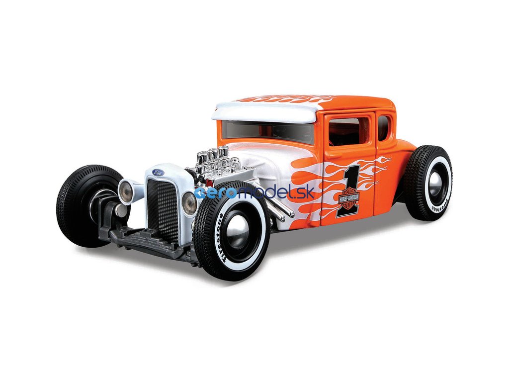 Kovový model auta 1:24 Maisto Harley-Davidson Custom - Ford model A 1929 nejen pro sběratele. Model je v detailním provedení na plastovém podstavci. Barva modelu je bílo-oranžová