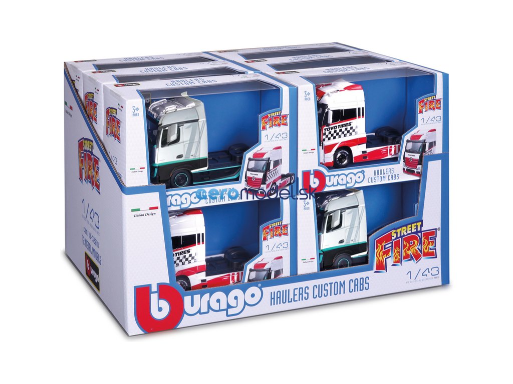 Sada 12 modelů Bburago 18-32200 Trucků bez návěsu v měřítku 1:43 nejen pro sběratele. Jsou vyrobeny z kovových a plastových dílů. Truck je přibližně 14,5 cm velký a můžete k němu připojit návěs. Modely jsou v detailním zpracování v různých barvách.