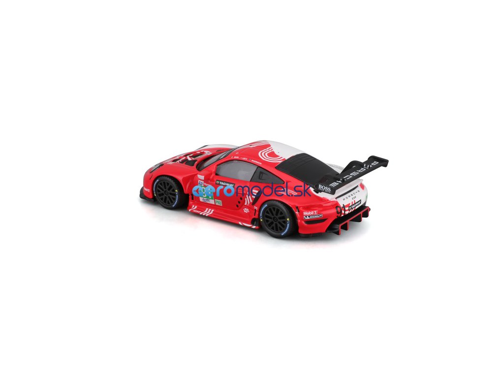 Kovový model auta Bburago 18-38308 Porsche 911 RSR LM 2020 v měřítku 1:43 je dodáván v průhledné krabičce.