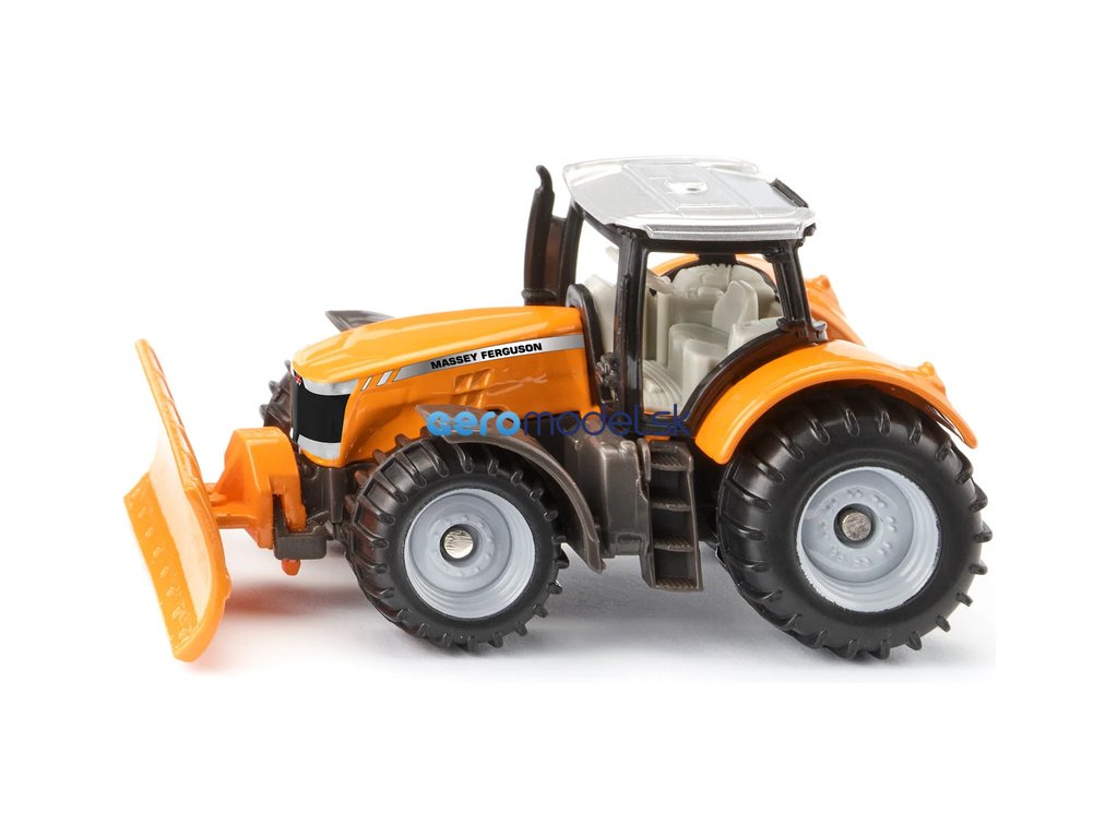 Kovový model traktoru Massey Ferguson s radlicí v měřítku 1:50 od značky Siku. Detailně zpracovaný traktor obsahuje gumové pneumatiky, odnímatelnou střechu, radlici lze demontovat. Vhodné pro hraní i sběratelství. Kvalitní zpracování z kovu a plastu. Baleno v blistru.