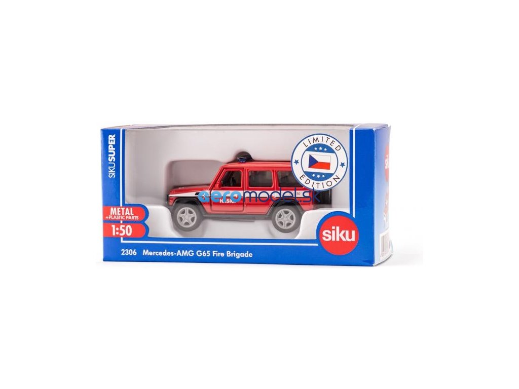 Kovový model hasičského auta Mercedes AMG G65 s českými nápisy v měřítku 1:50 od Siku. Otevírací boční a zadní dveře, výměnná kola, rezervní kolo. Vhodné pro hraní i sběratelství. Kvalitní zpracování z kovu a plastu.