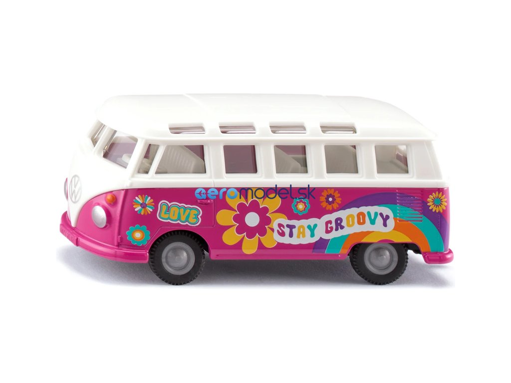Kovový model minivanu Volkswagen T1 v provedení Samba v měřítku 1:50. Legendární model z 50. let, oblíbený v komunitě hippies, jako model s detailním zpracováním a otevíracími dveřmi na pravé straně. Vhodné pro hraní i sběratelství. Kvalitní zpracování z kovu a plastu.