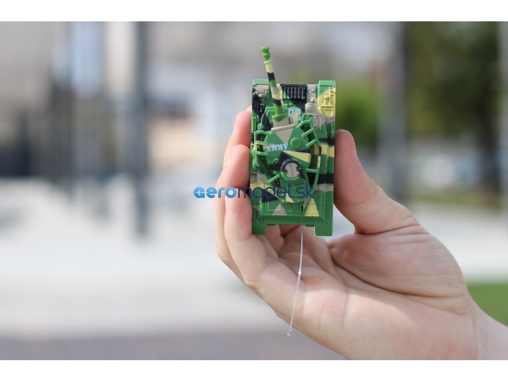Replika tanku s otáčaním veže, zvuk motora pri jazde, zvukové efekty pri streľbe. Aj napriek svojej veľkosti, je tento model tanku veľmi výkonný a rýchly, jazdí všetkými smermi. Má pružné a odolné pásy, otočnú vežu, zvukové efekty (naštartovanie, beh motora, rachotanie pásov pri jazde, zvuk otáčania veže, výstrel z dela). Tank sa nabíja z AA batérií cez kábel vedúci z diaľkového ovládania.