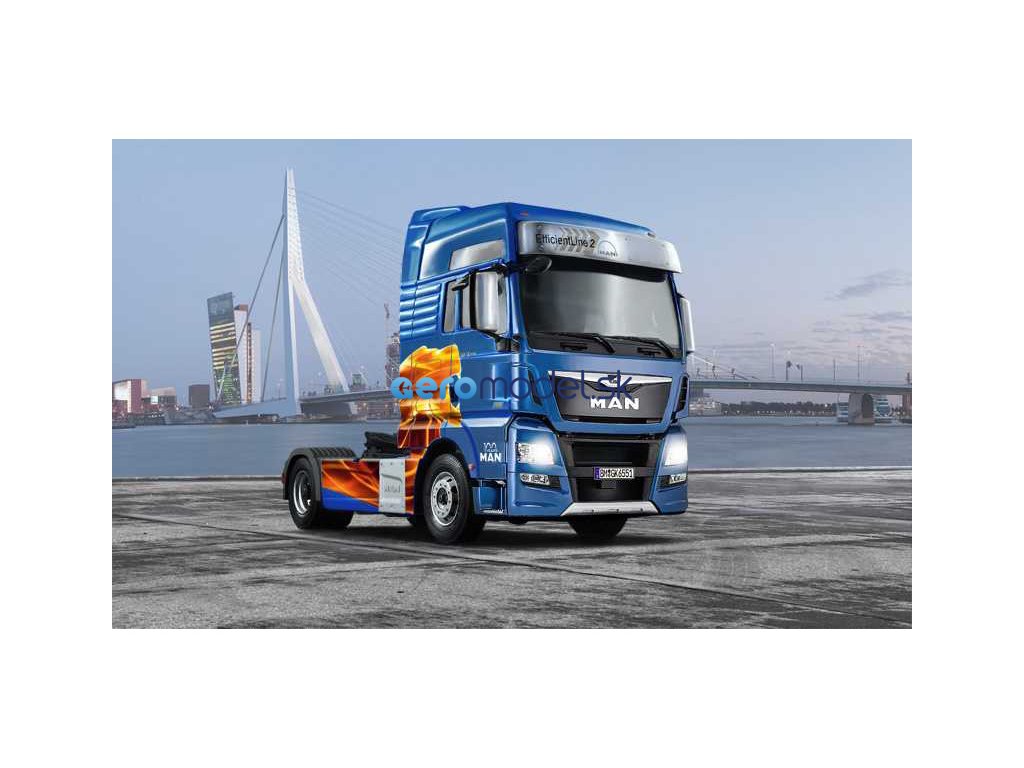 Plastové traktory Italeri MAN TGX XXL D38 v mierke 1:24. Dĺžka modelu 257 mm, obtiažnosť 4.