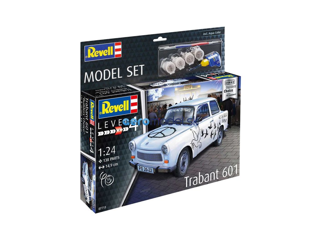 Plastikový model Revell 67713 - auto Trabant 601S v mierke 1:24 na zlepenie. Stavebnica obsahuje 138 dielov, dĺžka 149 mm, obtiažnosť 4.
