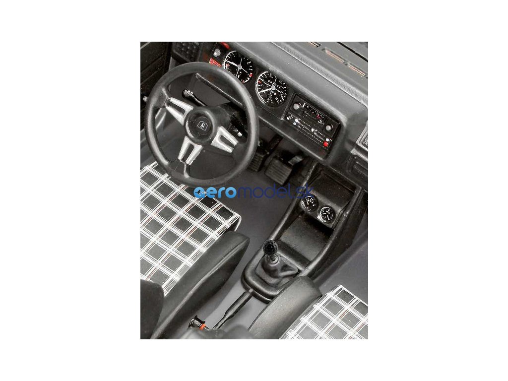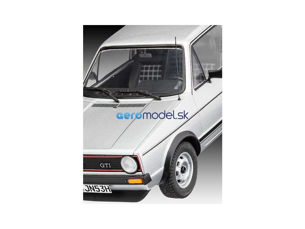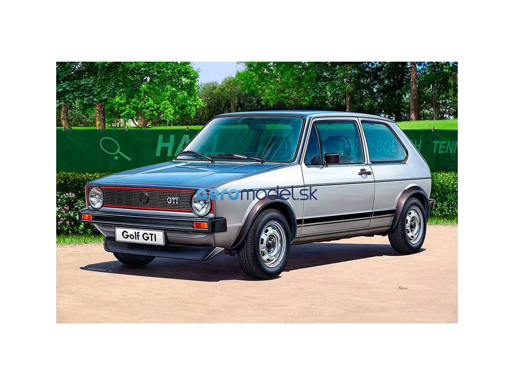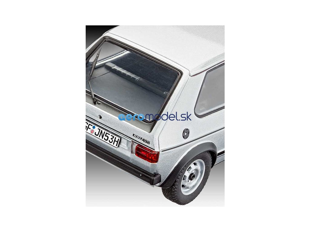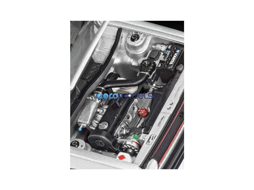 Plastikový model Revell 67072 - auto Volkswagen Golf 1 GTI v mierke 1:24 na zlepenie. Stavebnica obsahuje 121 dielov, dĺžka 154 mm, obtiažnosť 4.