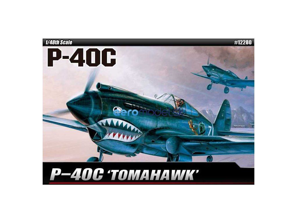 Plastikový model lietadla Curtiss P-40C v mierke 1:48 od akadémie.