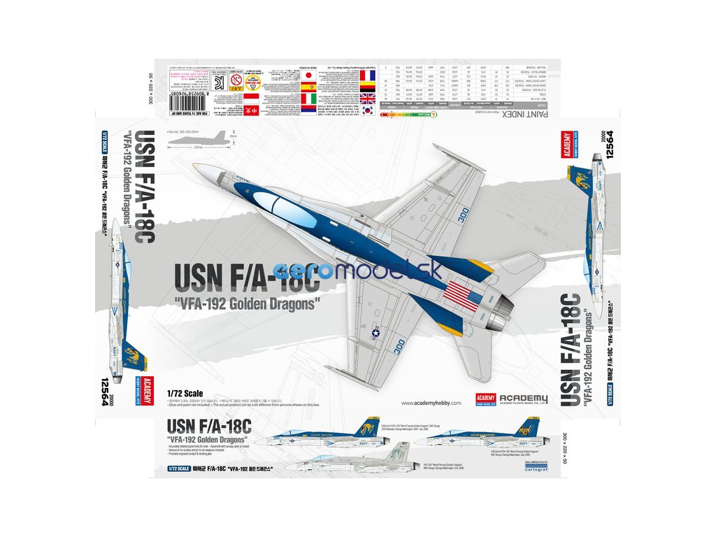 Academy 12564 - McDonnell F/A-18C USN VFA-192 Golden Dragons plastikový model v mierke 1:72 na zlepenie.