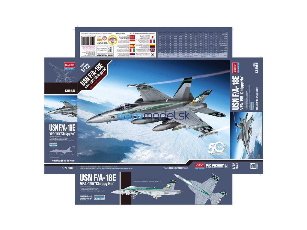 Academy 12565 - McDonnell F/A-18E USN VFA-195 Chippy Ho plastikový model v mierke 1:72 na zlepenie.