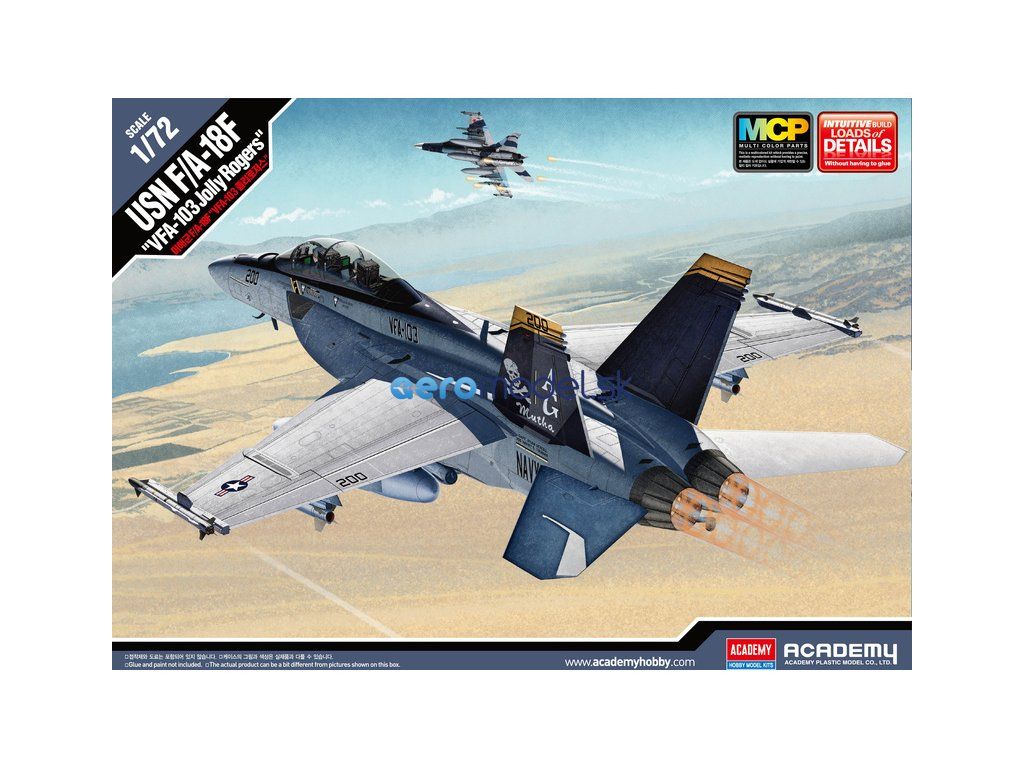 Academy 12535 - McDonnell F/A-18F USN VFA-103 Jolly Rogers MCP plastikový model v mierke 1:72 na zlepenie.