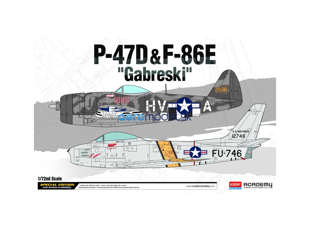 Academy 12530 - plastikové modely P-47D a F-86E Gabreski v mierke 1:72 na zlepenie.