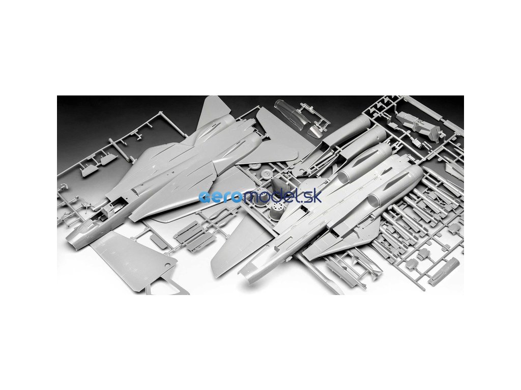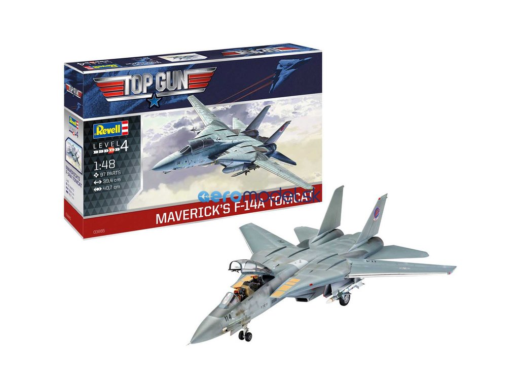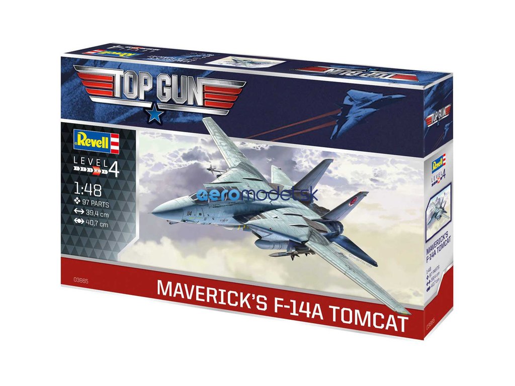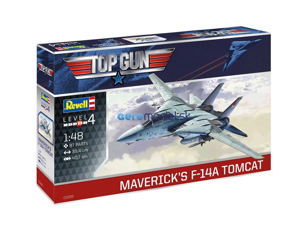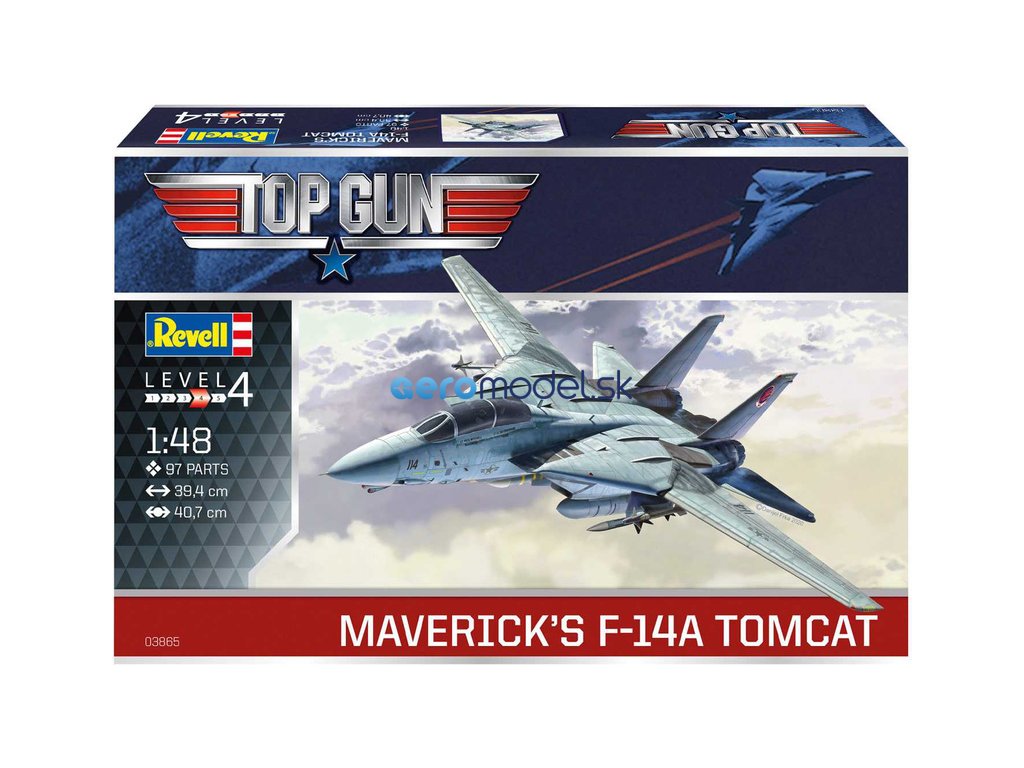 Plastikový model Revell 03865 - Maverick's F-14A Tomcat Top Gun v mierke 1:48 na zlepenie. Stavebnica obsahuje 96 dielikov, rozpätie krídel 407 mm, obtiažnosť 4.